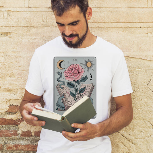 Floral Snake Reading Tee – The Reader Tarot Shirt – Retro Bookish Witchy Gift – White – Up To 5XL