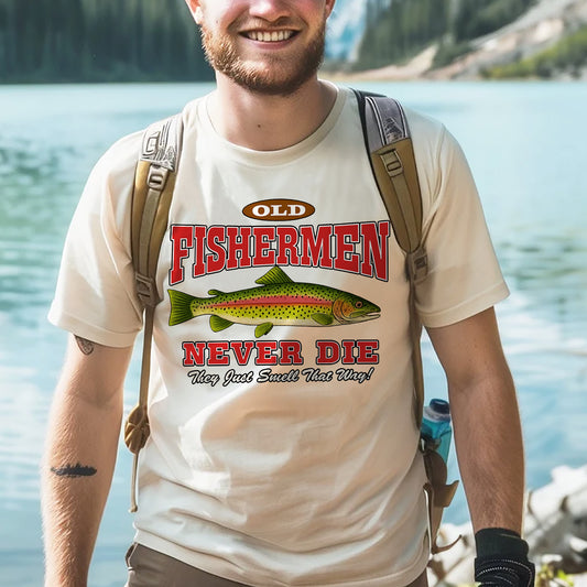 Old Fishermen Never Die They Just Smell That Way Shirt – Funny Trout Fishing Tee – Natural – Up To 5XL