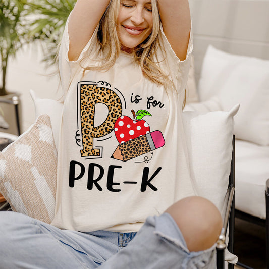 P is for Pre-K T-Shirt – Cute Preschool Teacher & Student Tee - Funny Shirt For Teacher - Natural - Up To 5XL