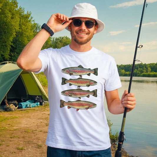 Outdoor Trout Fishing Shirt – Freshwater Angler Graphic Shirt – White – Up To 5XL