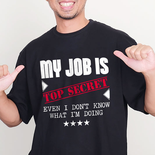 Office Humor Shirt – My Job Is Top Secret Even I Don’t Know What I’m Doing – Funny Work Meme Tee – Black – Up To 5XL