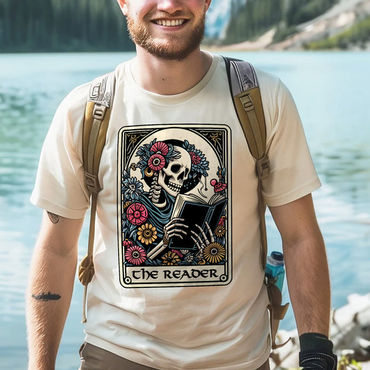 Skeleton Reading Tee – The Reader Card Shirt – Book Lover Gift – Natural – Up To 5XL