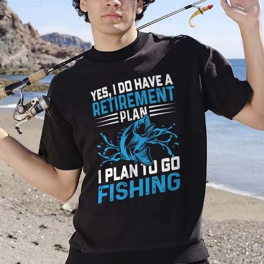 Funny Retirement Shirt – I Do Have a Retirement Plan I Plan to Go Fishing Tee – Senior Angler Humor – Black – Up To 5XL