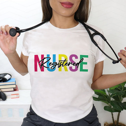 Registered Nurse Shirt – Colorful RN T-Shirt – Cute Nurse Appreciation Gift for Women - White - Up To 5XL