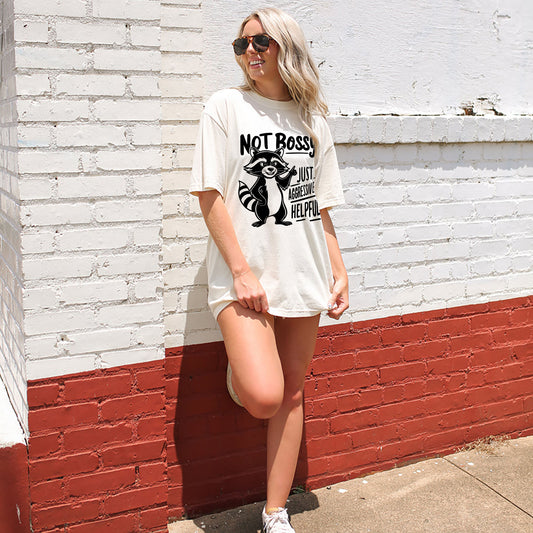 Funny Sarcastic Animal Tee- I'm Not Bossy Just Aggressively Helpful Humor Shirt for Women - Natural - Up To 5XL