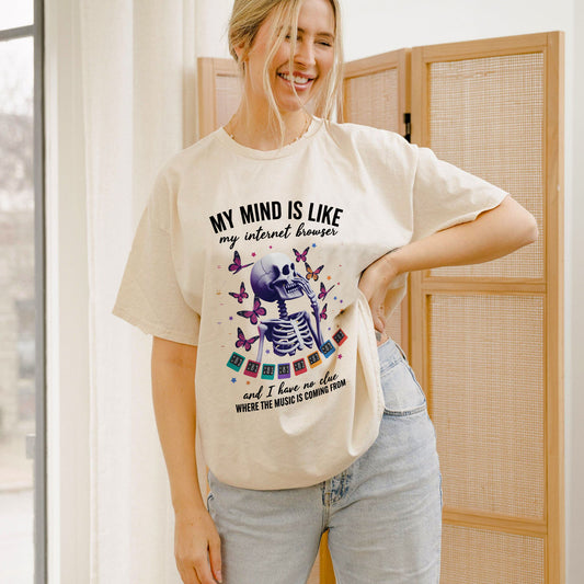 Funny Skeleton Shirt – My Mind Is Like My Internet Browser – ADHD Humor Tee - Natural - Up To 5XL