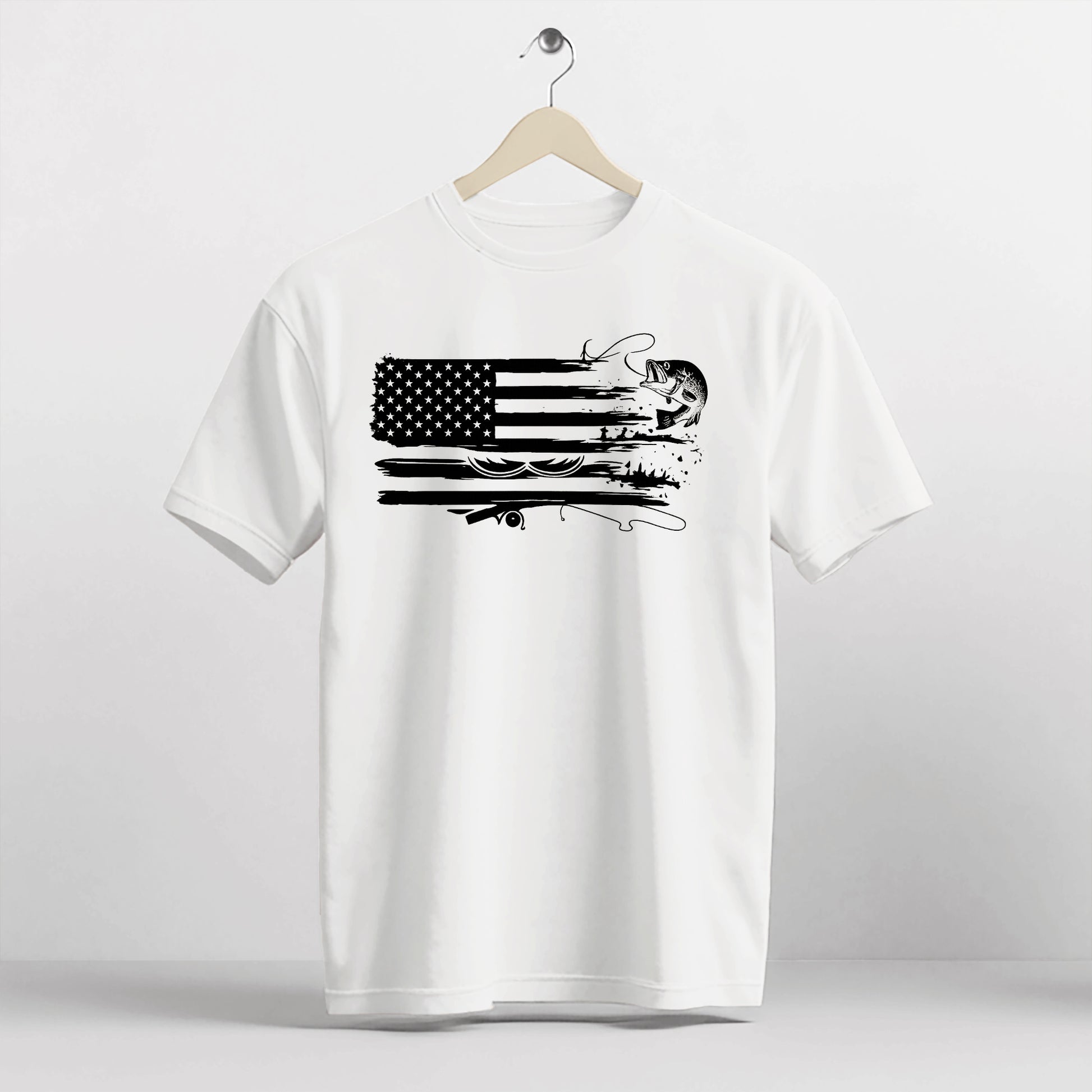 American Fishing Shirt – USA Flag Bass Angler Tee – Patriotic Fishing Gift – White – Up To 5XL