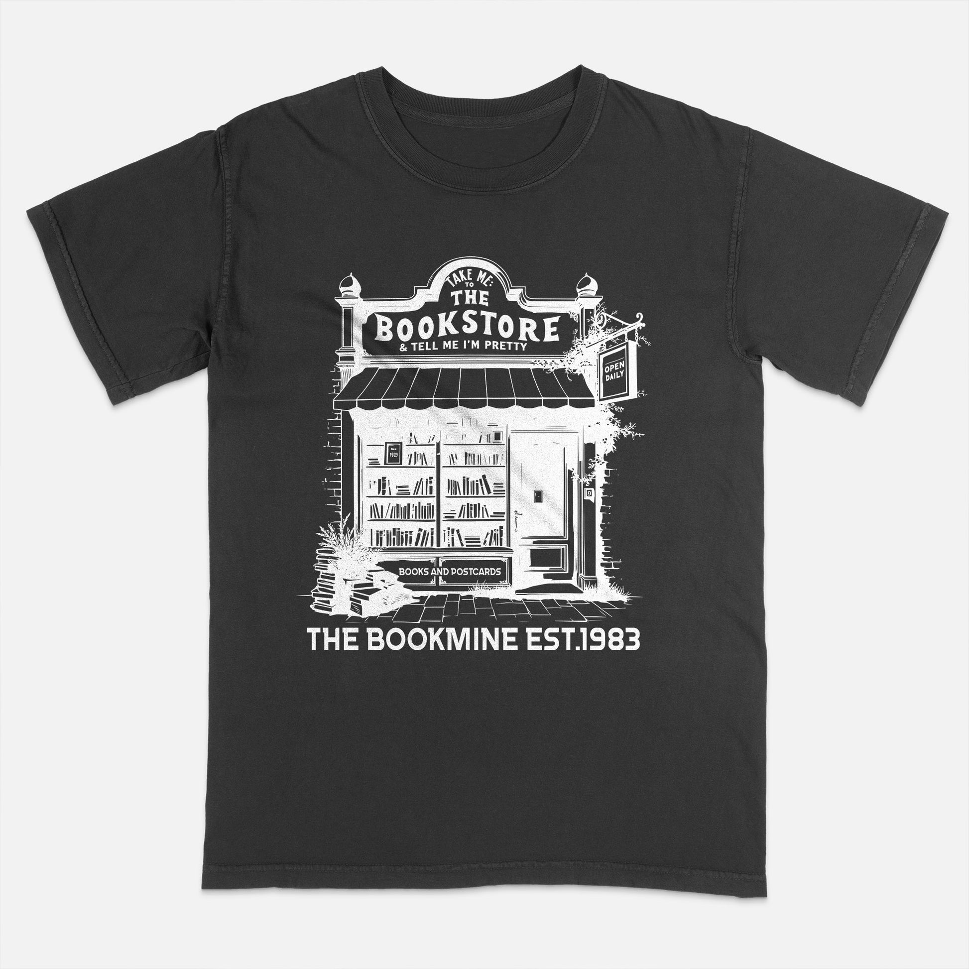 The “Take Me To The Bookstore & Tell Me I’m Pretty” tee is a love letter to bookworms who appreciate compliments and a good first edition. With a nod to The Bookmine (Est. 1983), this shirt blends charm, wit, and literary devotion into one cozy package.