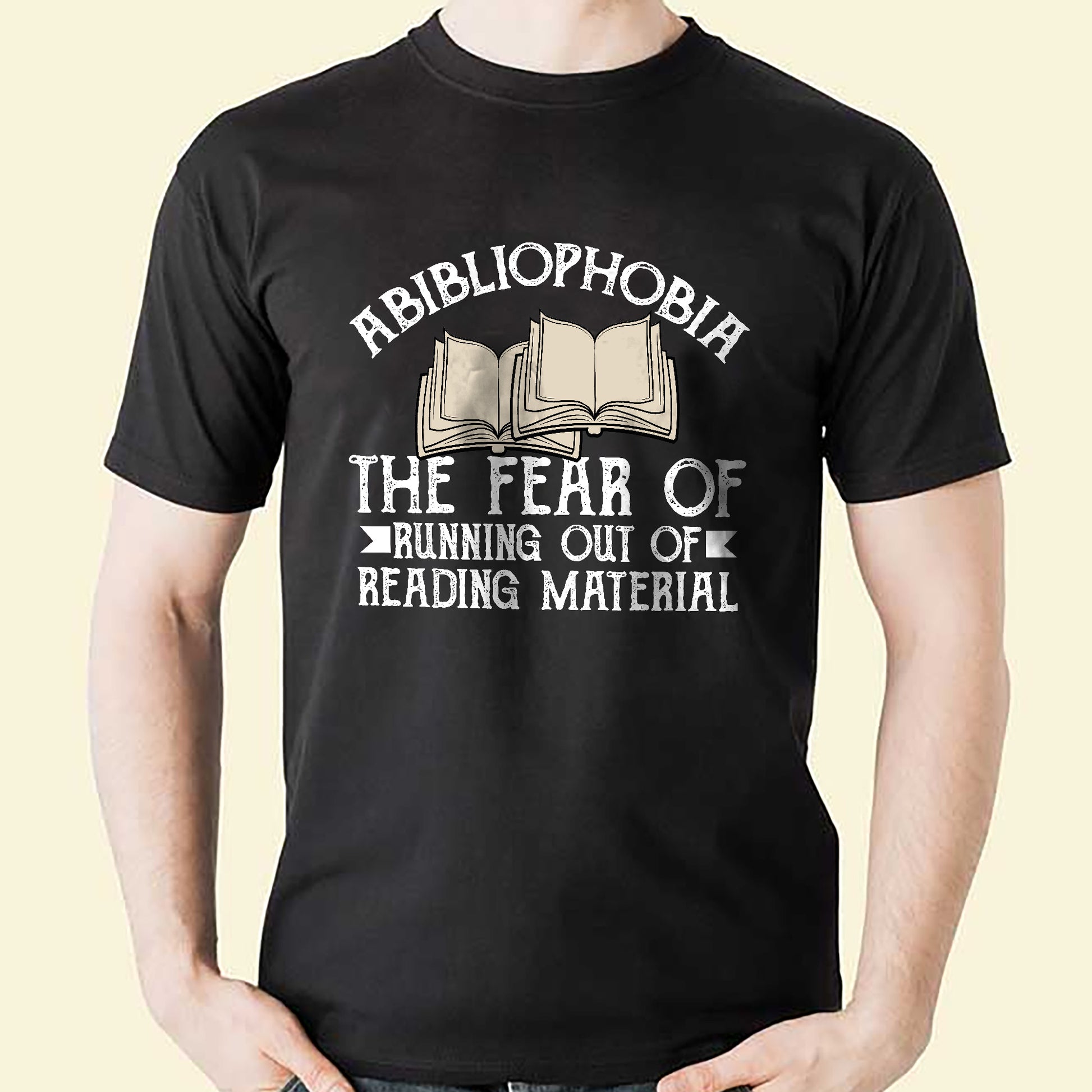Book Lover Tee – Abibliophobia Fear Of Running Out Of Books Read Funny Shirt – Black – Up To 5XL