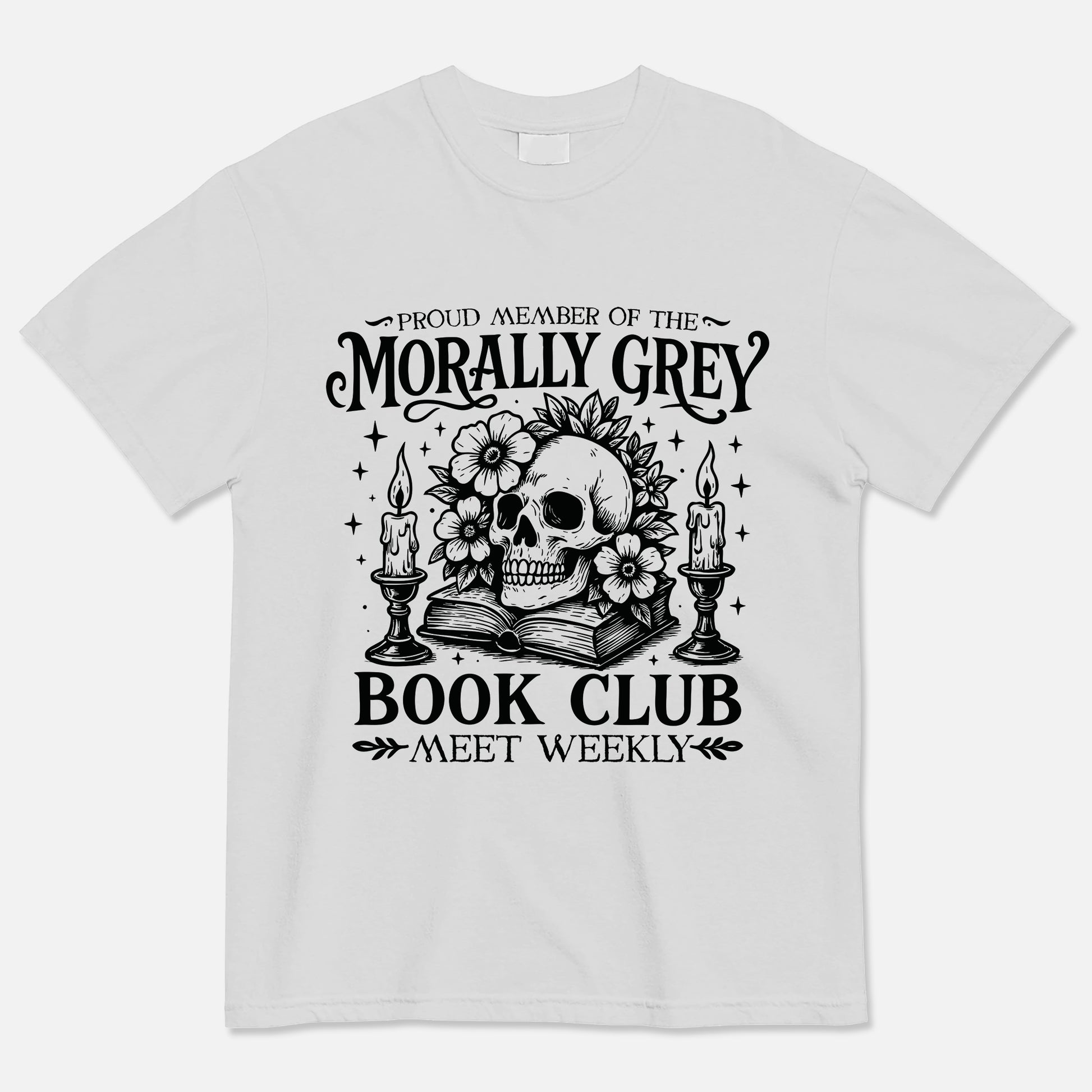 Bookish Shirt – Proud Member of the Morally Grey Book Club Tee – Academia Book Lover – White – Up To 5XL