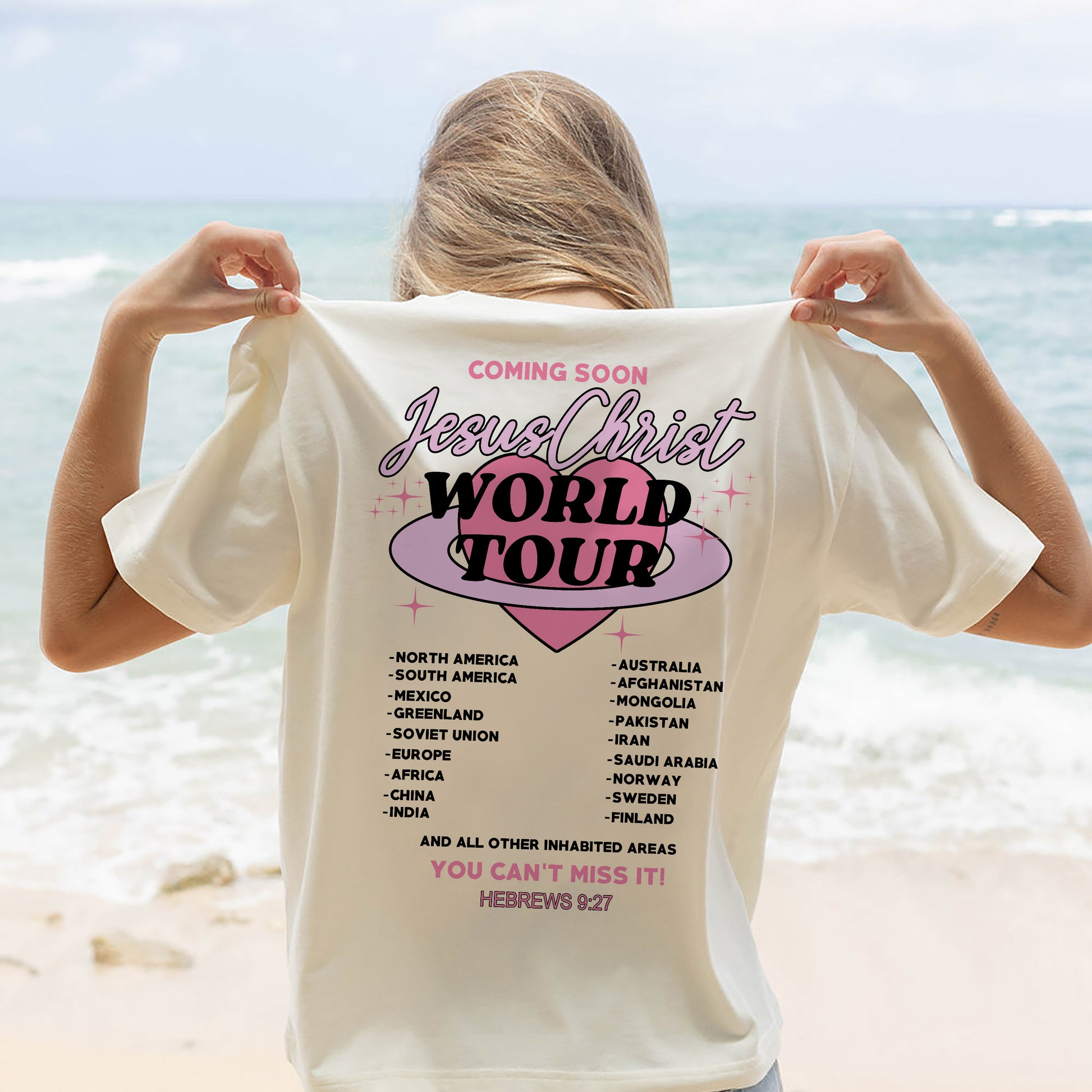 Christian Parody Shirt – Coming Soon Jesus Christ World Tour – Funny Faith Concert Tee – Natural – Up To 5XL