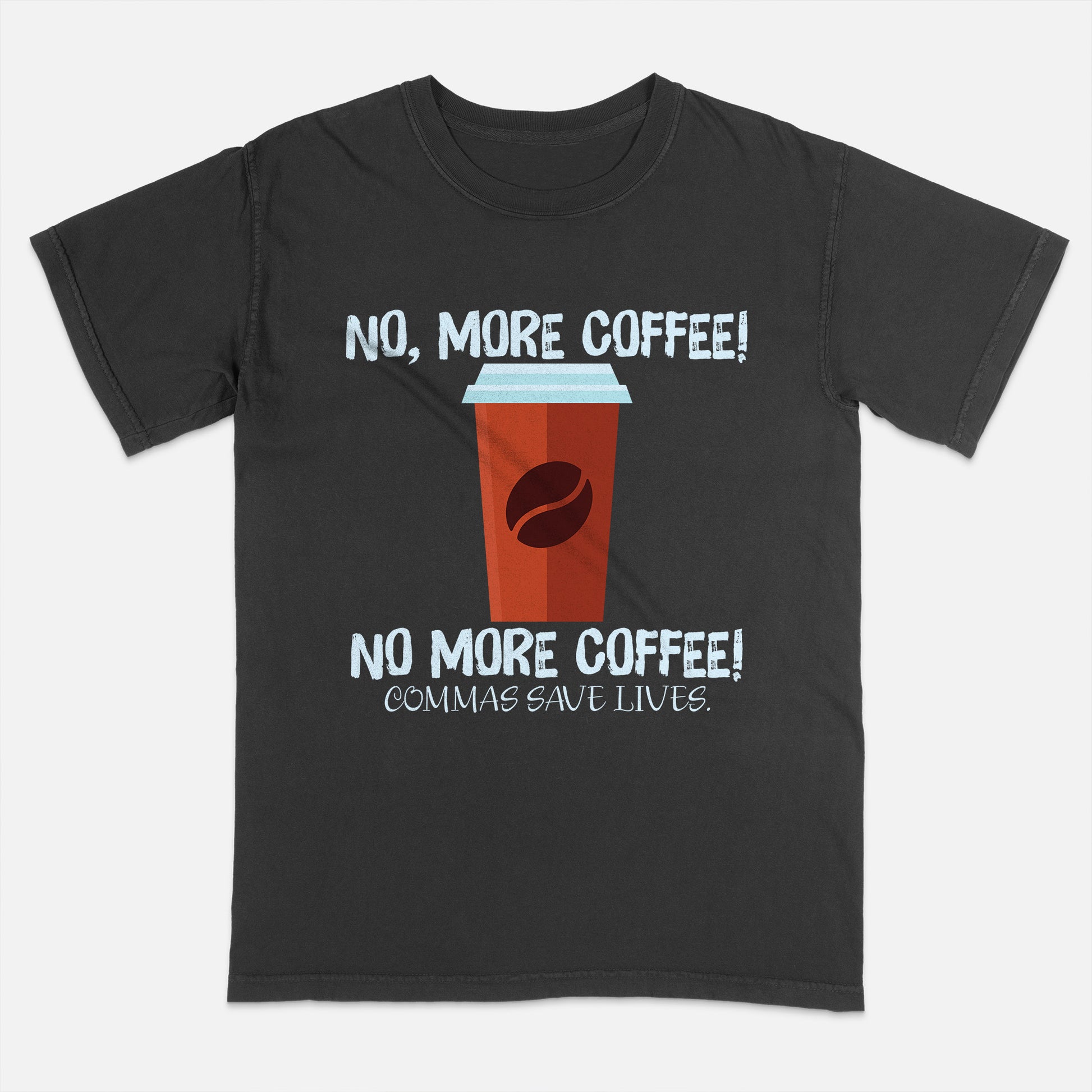 Commas Save Lives Shirt – No, More Coffee! No More Coffee! Tee – Funny English Teacher Gift – Black – Up To 5XL