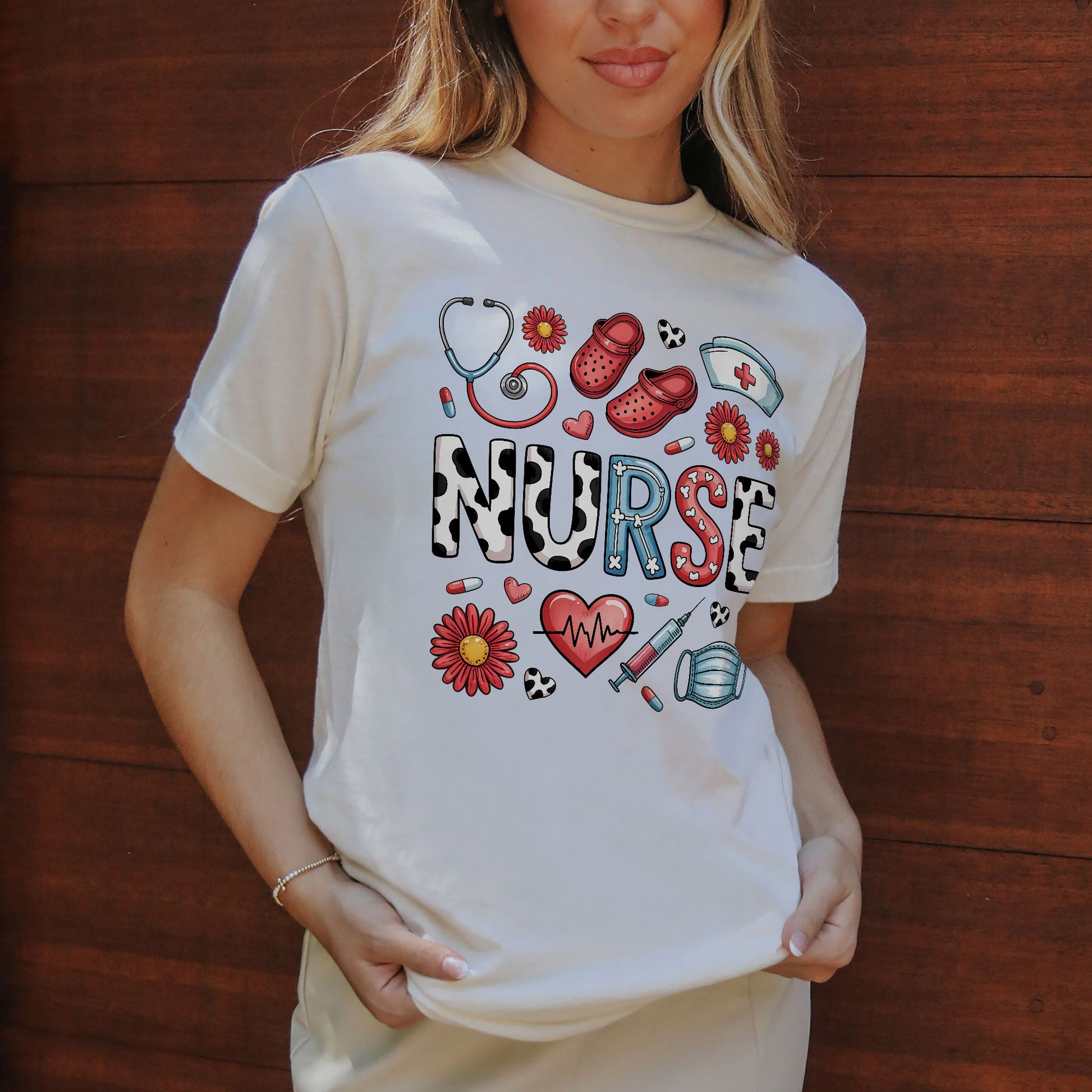 Cute Icon Nurse Shirt – Nursing Graphic Tee Gift For Nursing - Natural - Up To 5XL