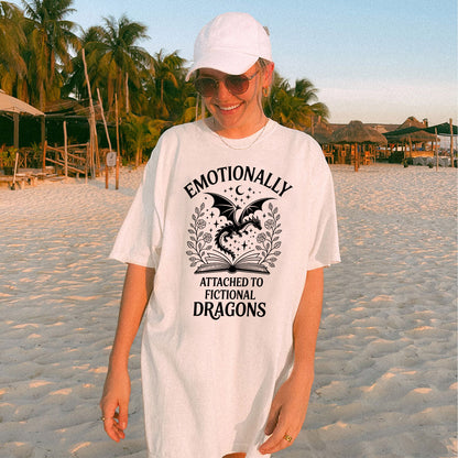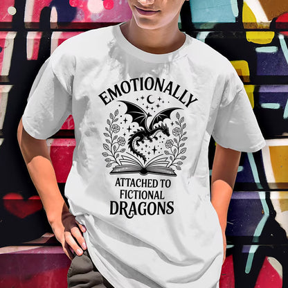 Fantasy Nerd Shirt – Emotionally Attached to Fictional Dragons Tee – Book Lover Gift – White – Up To 5XL