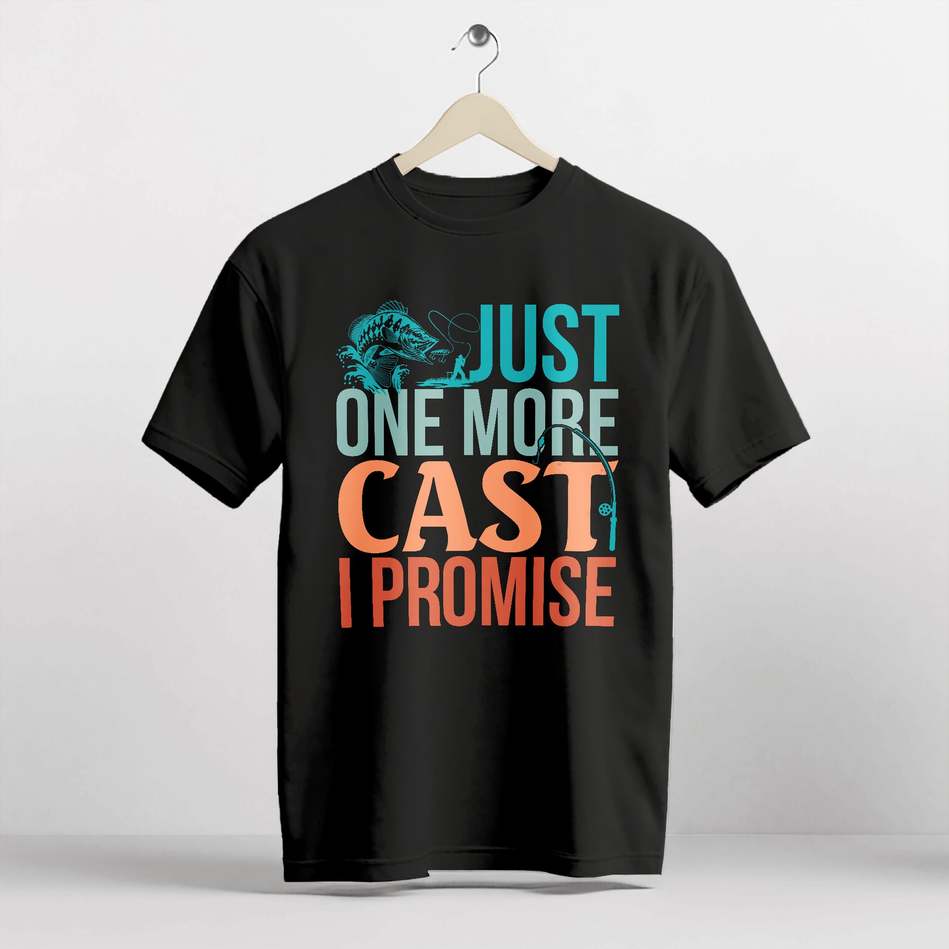 Fishing Addict Shirt – Just One More Cast I Promise Tee – Funny Fisherman Gift – Black – Up To 5XL