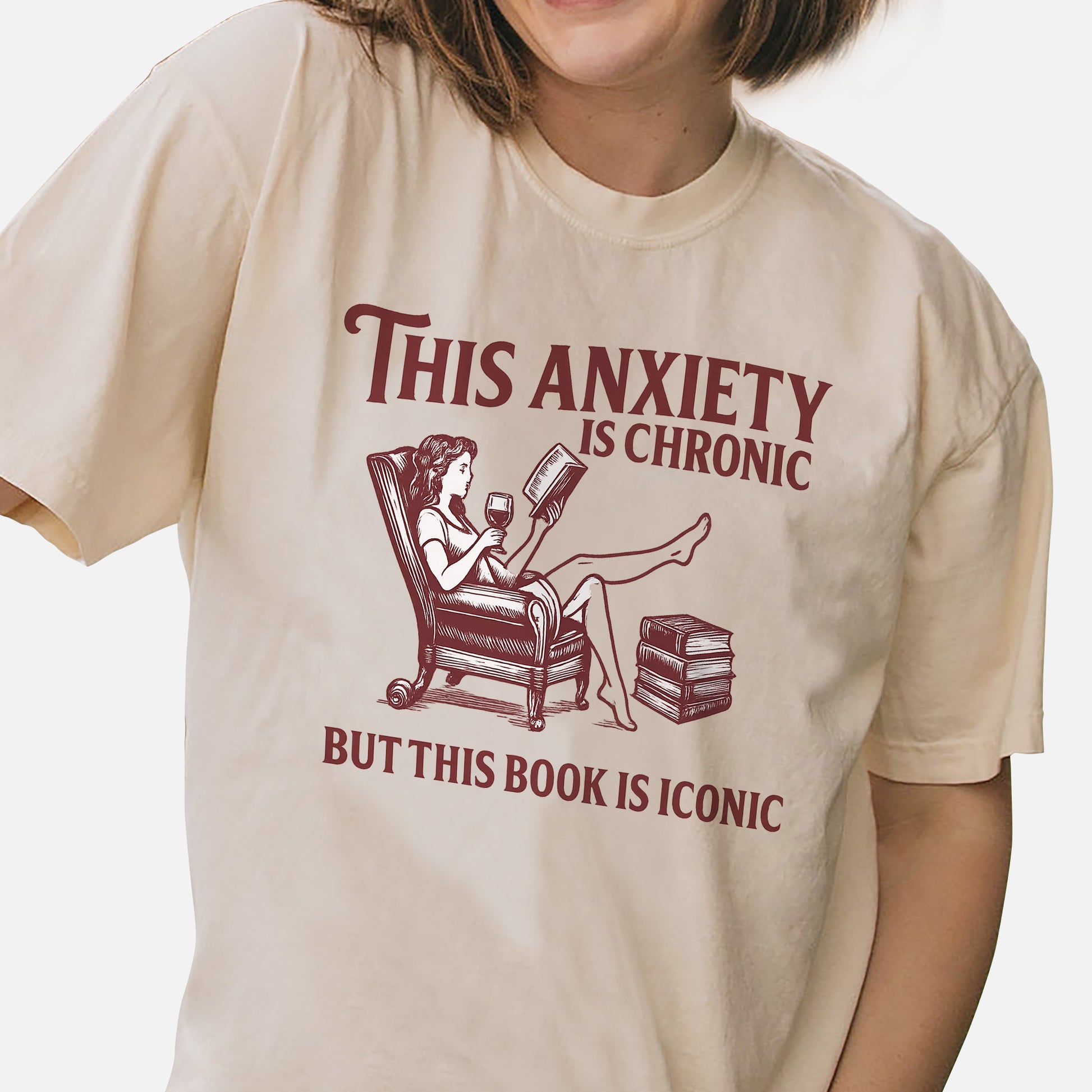 “This Anxiety Is Chronic But This Book Is Iconic” is the go-to tee for bookworms who fight inner battles but find healing in stories. Equal parts relatable and hilarious, this shirt makes a bold statement—because reading is therapy, and you’re doing great, sweetie.