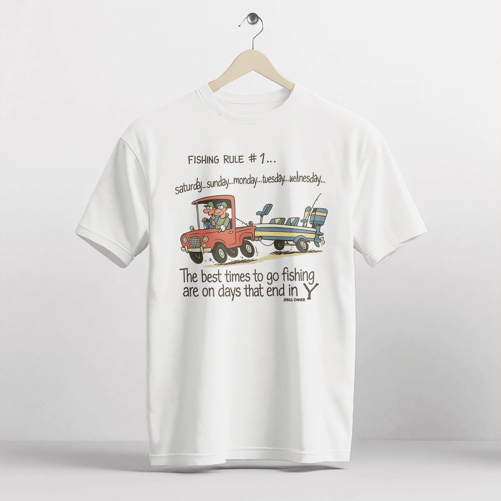 Funny Fisherman Tee - Rule #1 Best Days To Go Fishing Shirt – White – Up To 5XL