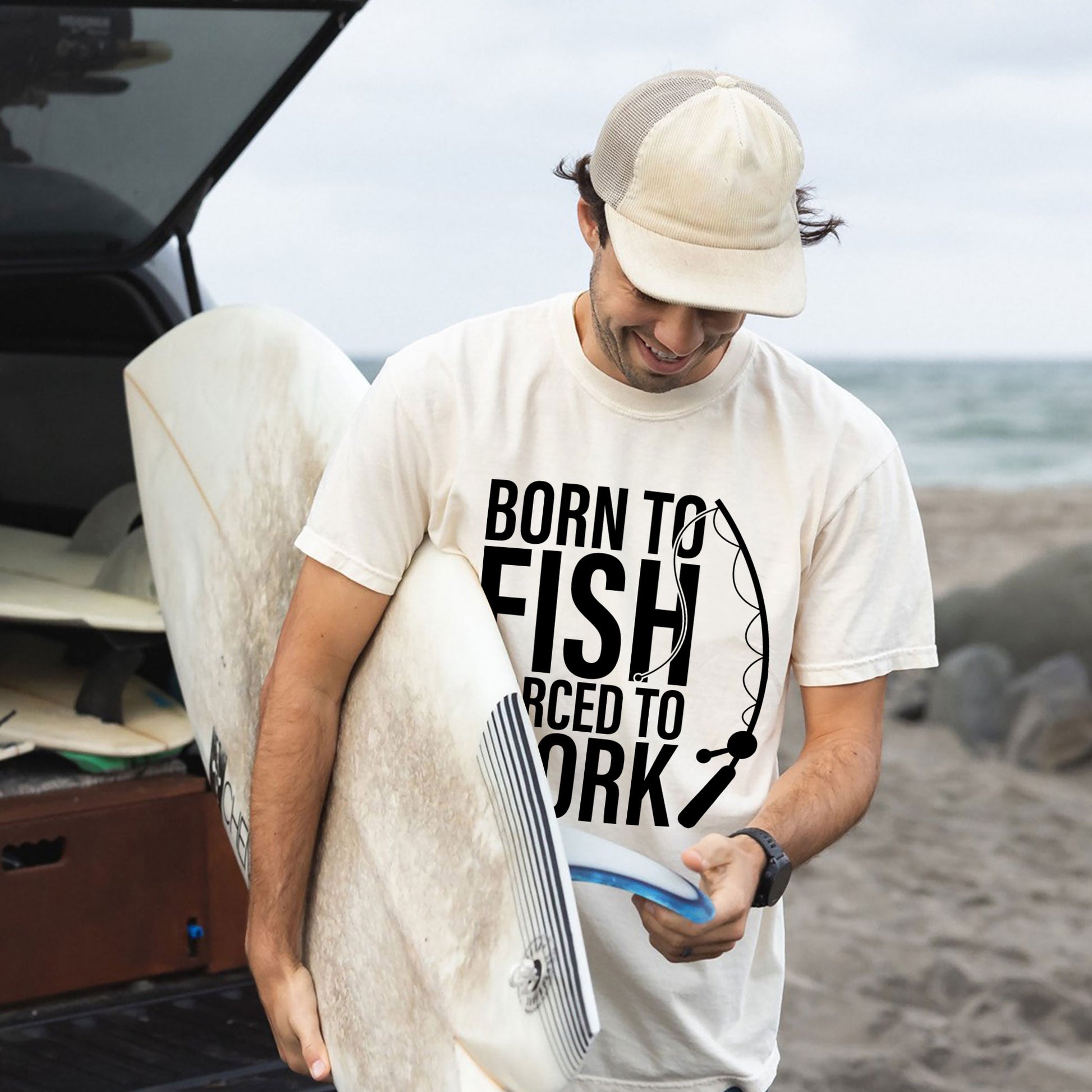 Work gets in the way, but fishing is life! This bold Born to Fish, Forced to Work shirt is perfect for anglers counting the hours ‘til the next cast. A must-have for weekend warriors, fishing dads, or anyone who'd rather be on the water than in the office.