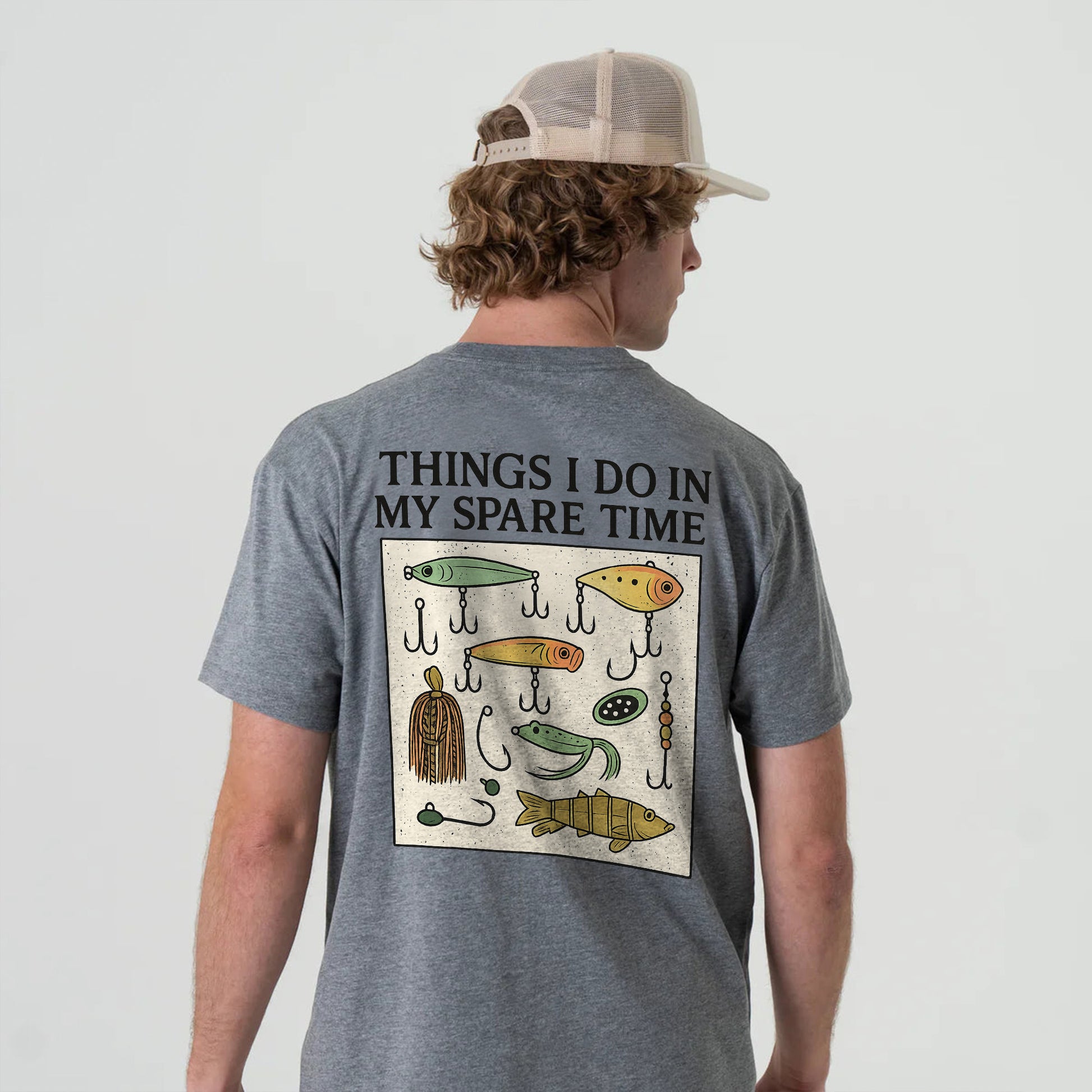 A must-have for any fisherman with a sense of humor! This “Things I Do in My Spare Time” fishing T-shirt features a fun illustration of fishing lures – perfect for those who spend more time at the lake than at home. Whether you're into bass fishing, fly fishing, or just chilling by the water, this comfy tee shows off your passion with a laugh.