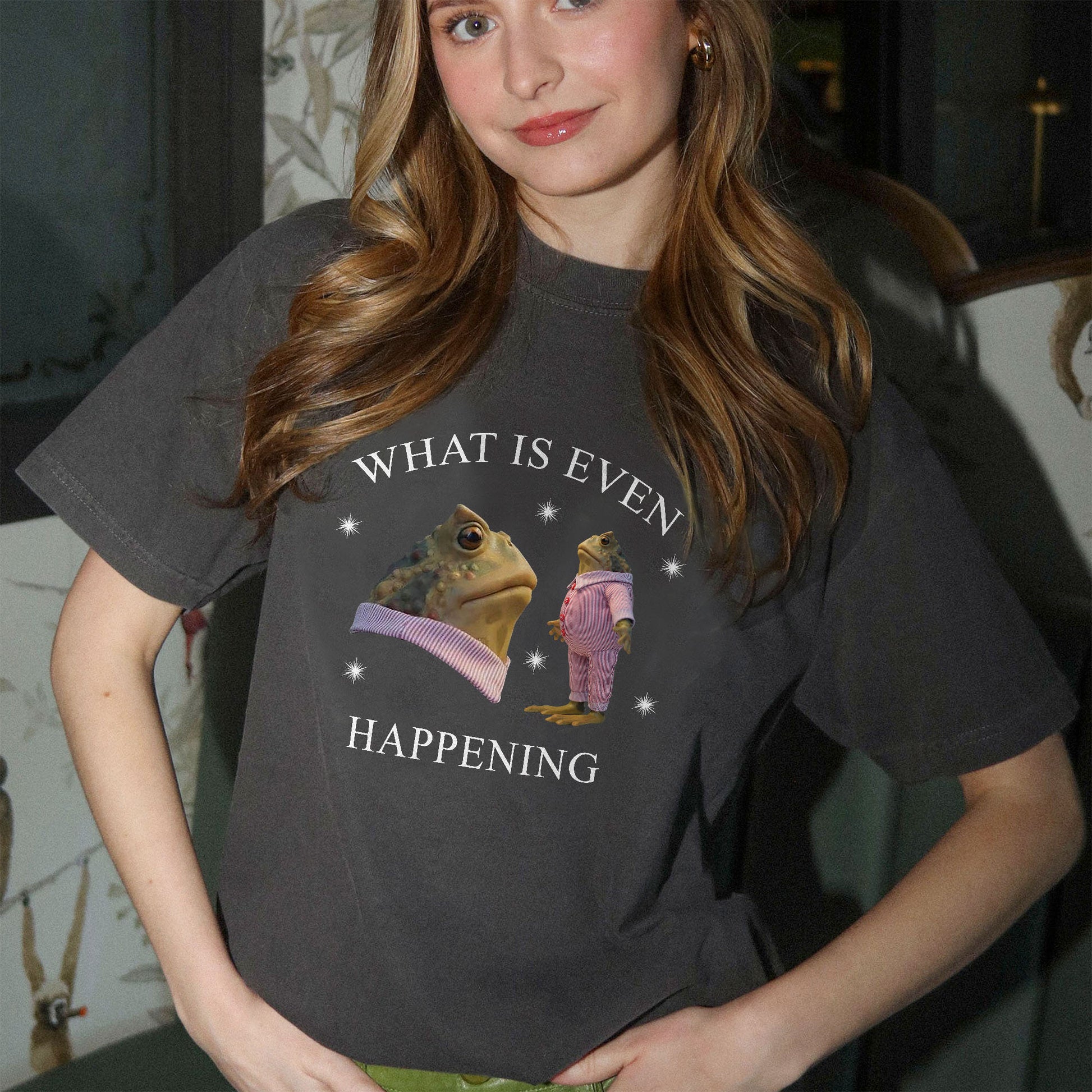 Funny Frog Shirt – What Is Even Happening – Absurd Meme Humor Tee – Black – Up To 5XL