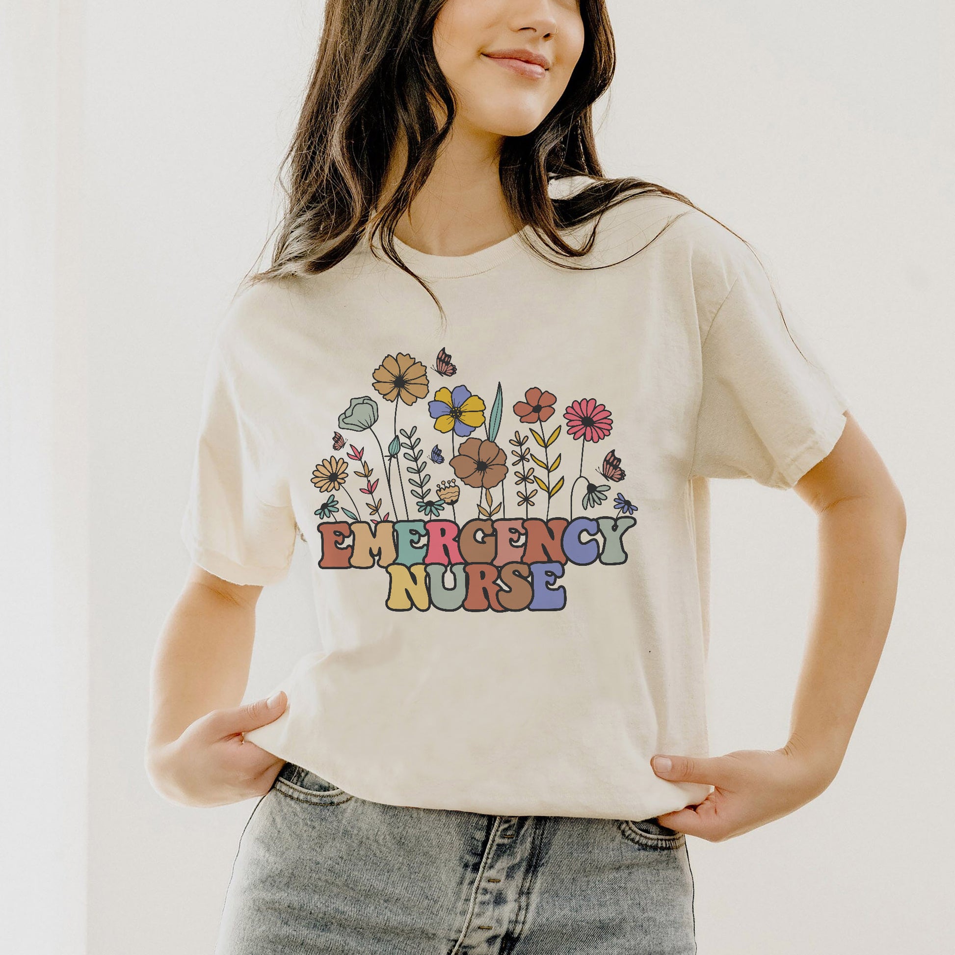 Funny Shirt For ER Nurse - Vintage Floral Emergency Nurse Tee - Natural- Up To 5XL