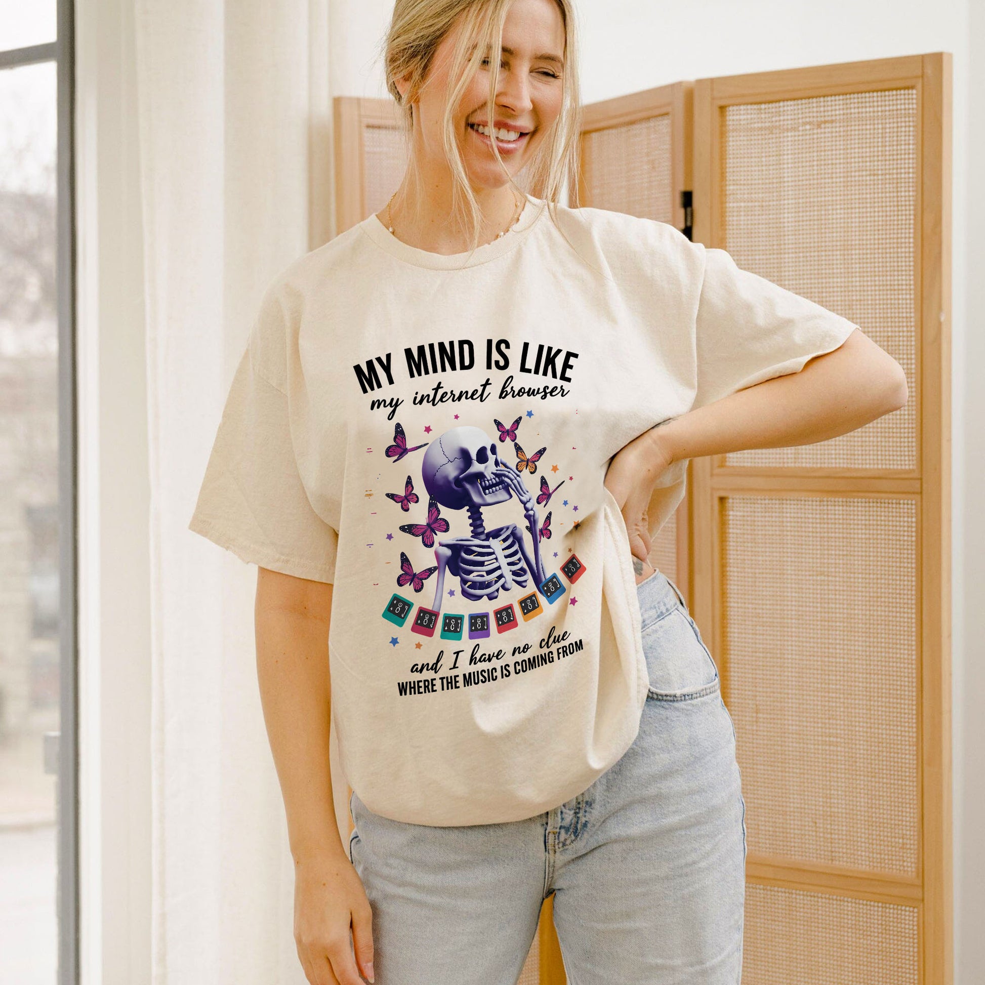 Funny Skeleton Shirt – My Mind Is Like My Internet Browser – ADHD Humor Tee - Natural - Up To 5XL