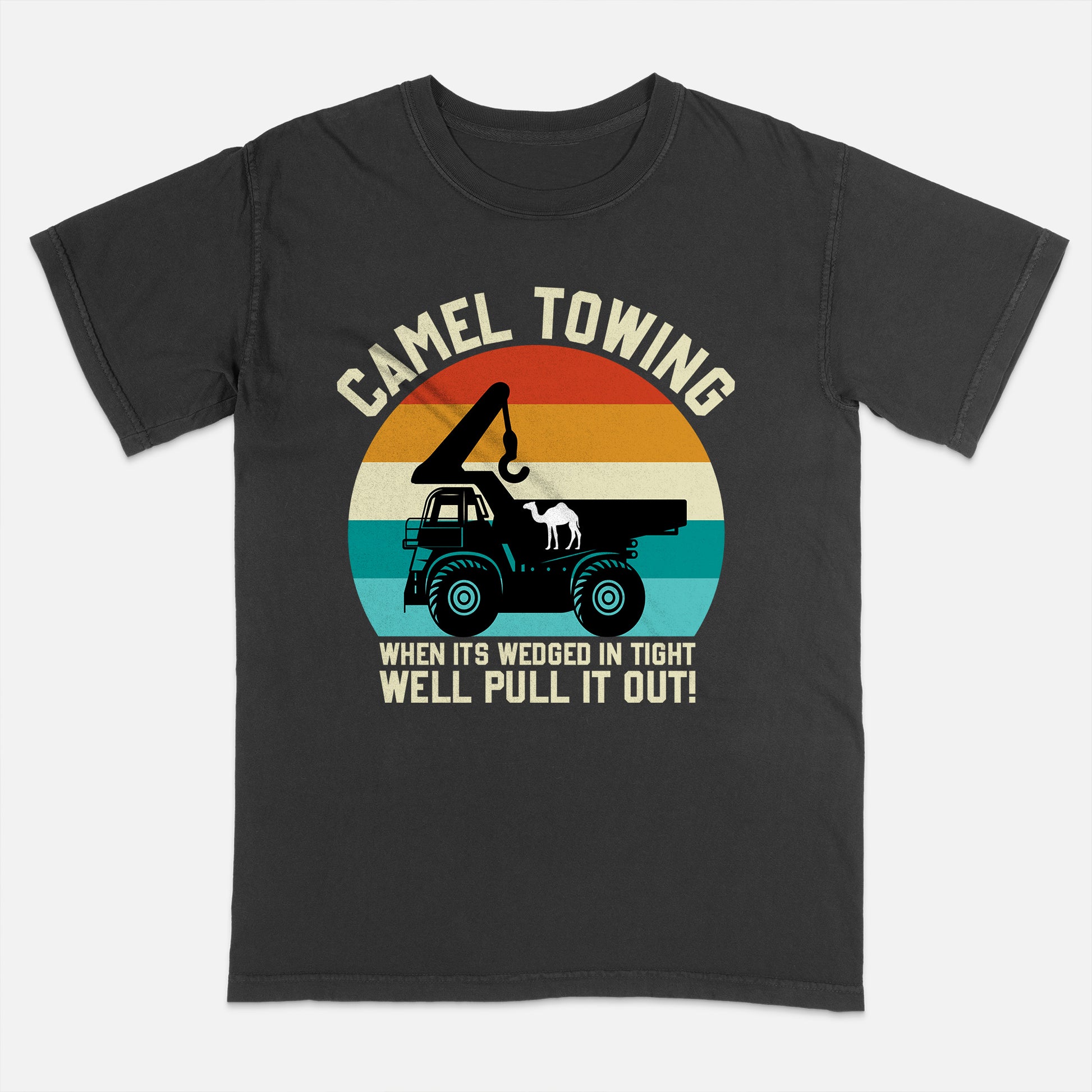 The “Camel Towing – When It’s Wedged In Tight, We’ll Pull It Out” tee is your go-to shirt for vintage garage humor with just the right amount of innuendo. Whether you're under the hood or cracking beers with the boys, this classic pun never gets old (unlike your transmission).