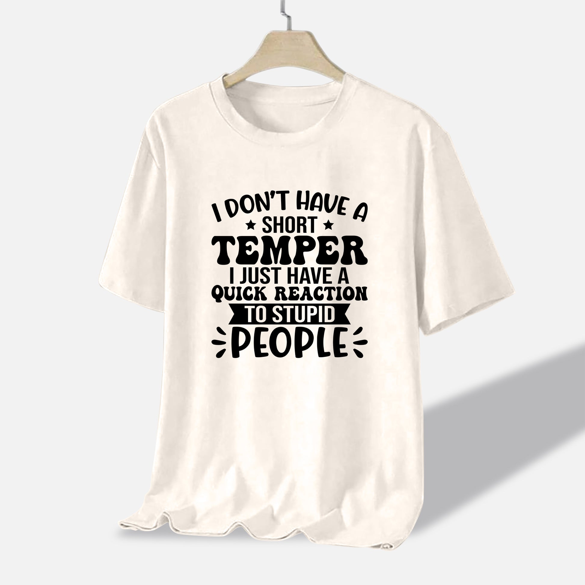 Funny Women Shirt - I Don’t Have a Short Temper, I Just Have a Quick Reaction to Stupid People Tee - Natural - Up To 5XL