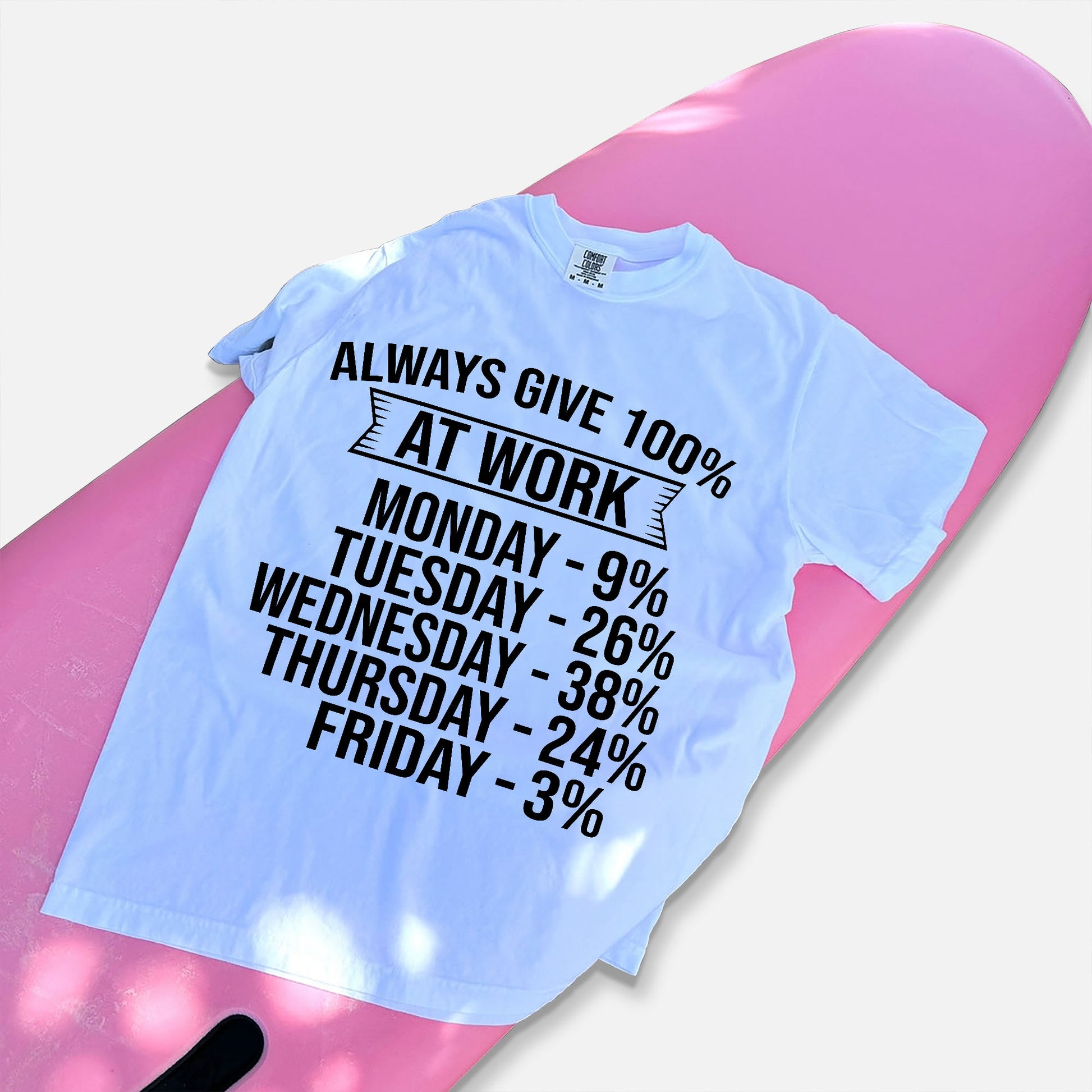 This “Always Give 100% At Work” tee hilariously breaks down the modern employee mindset — with suspiciously accurate math. It's perfect for anyone who knows that “full effort” looks very different across the week.