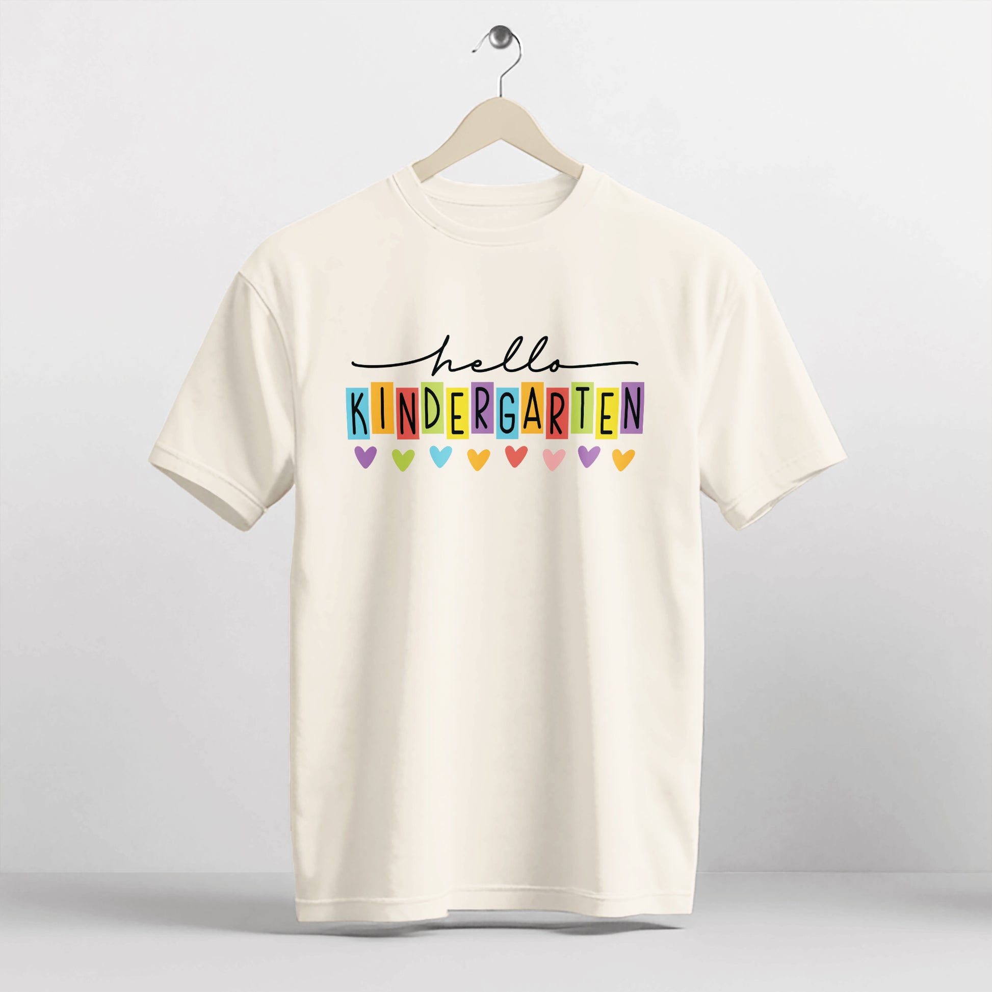Hello Kindergarten Shirt – Back to School Gift Tee – Natural – Up To 5XL