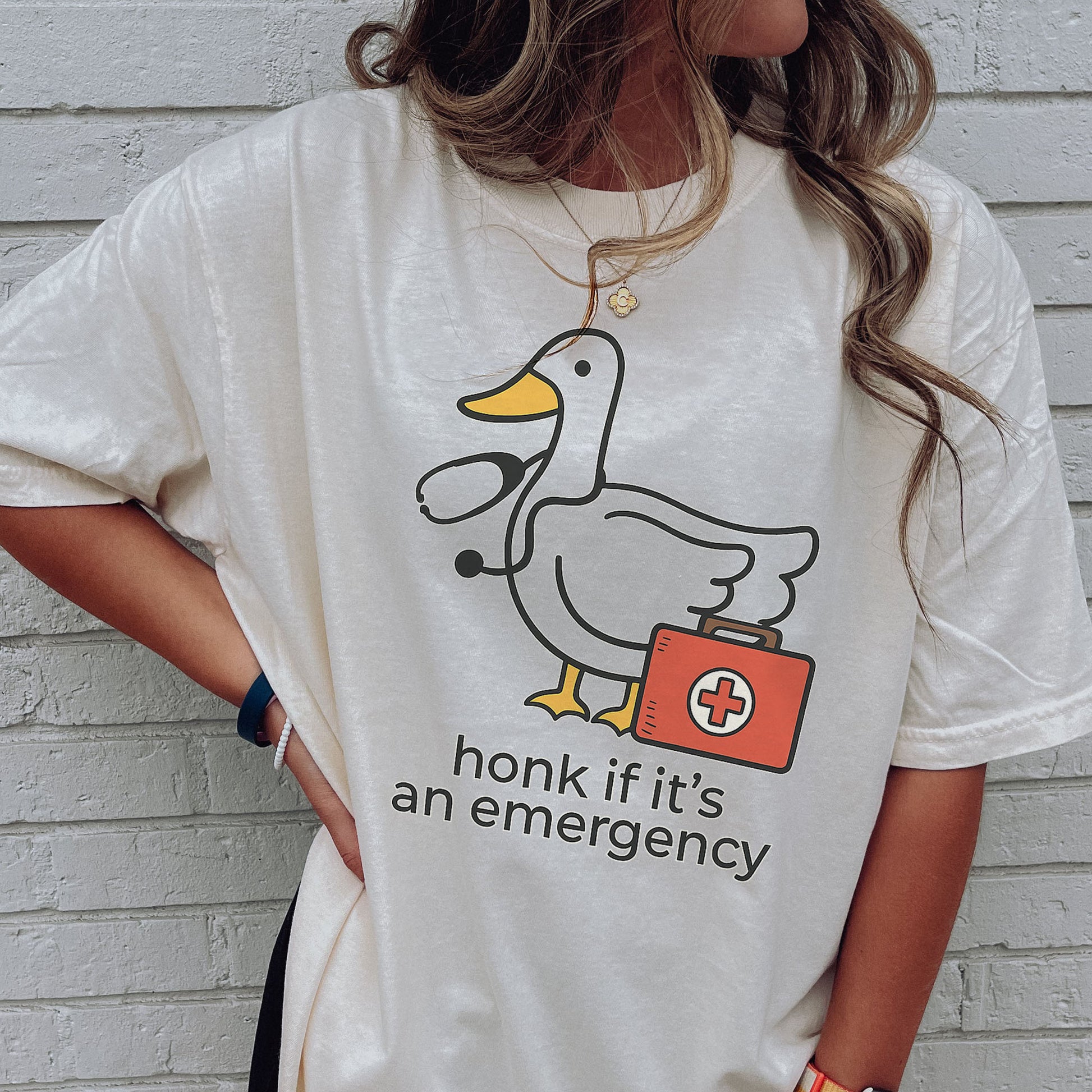 Funny Tees For ER Nurse - Honk If It’s An Emergency T-Shirt - Natural- Up To 5XL