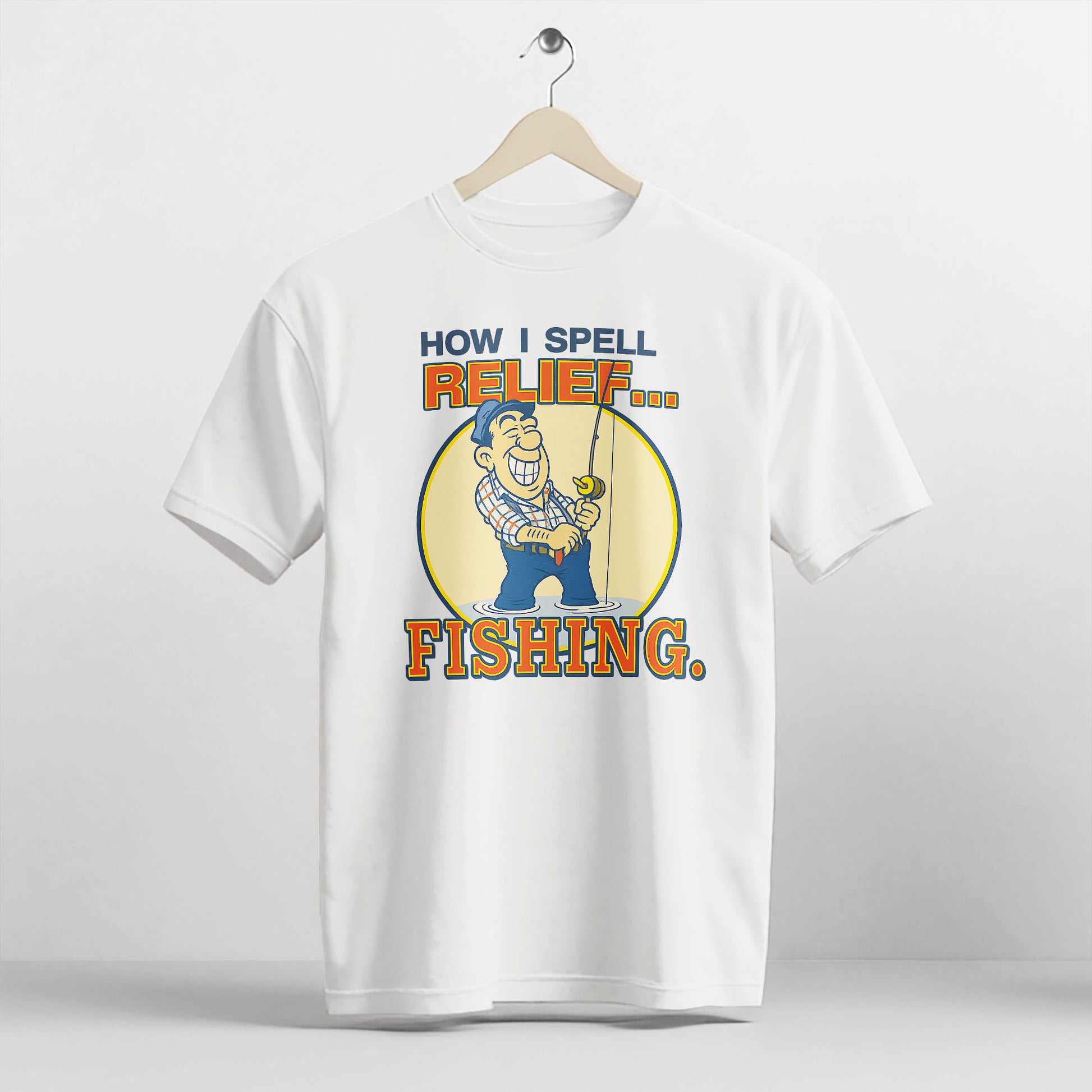 How I Spell Relief Fishing Shirt – Funny Fishing Tee – Fisherman Humor Gift – White – Up To 5XL