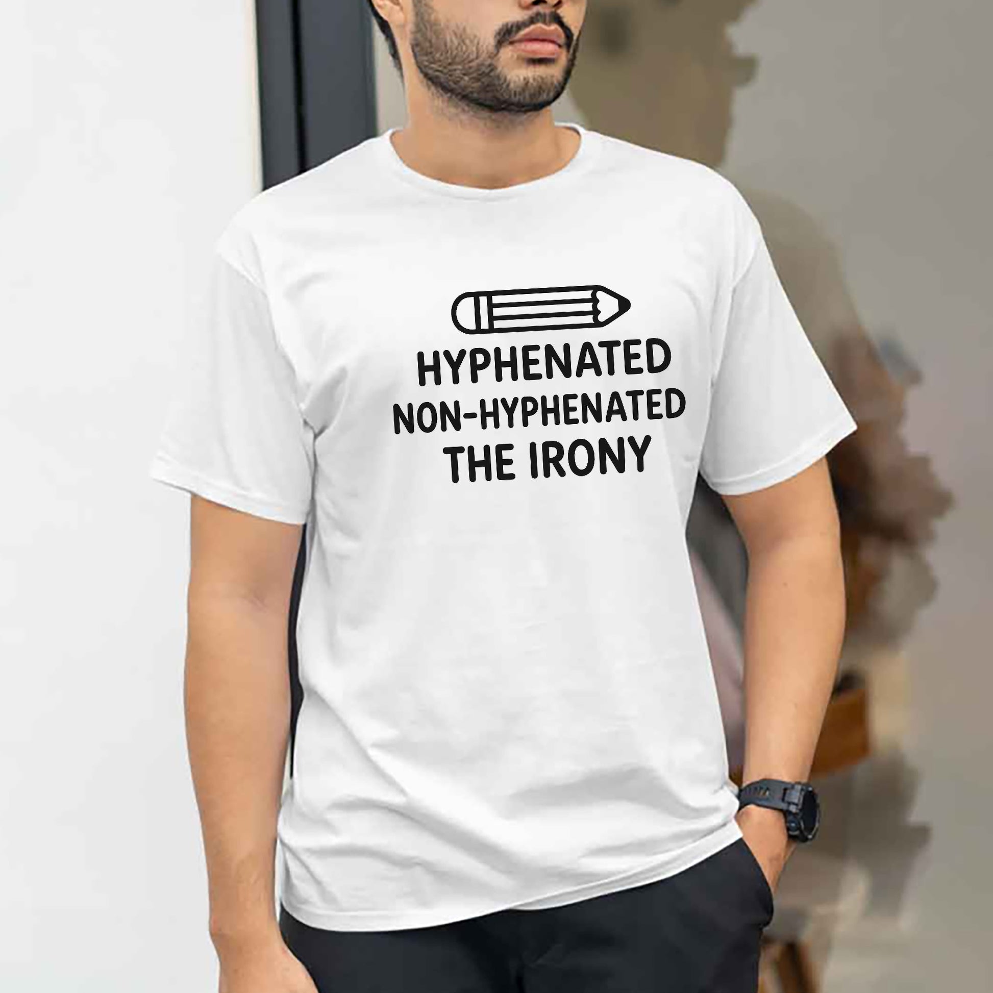 Hyphenated Shirt – Non-Hyphenated The Irony Tee – Funny Grammar Nerd Gift – White – Up To 5XL