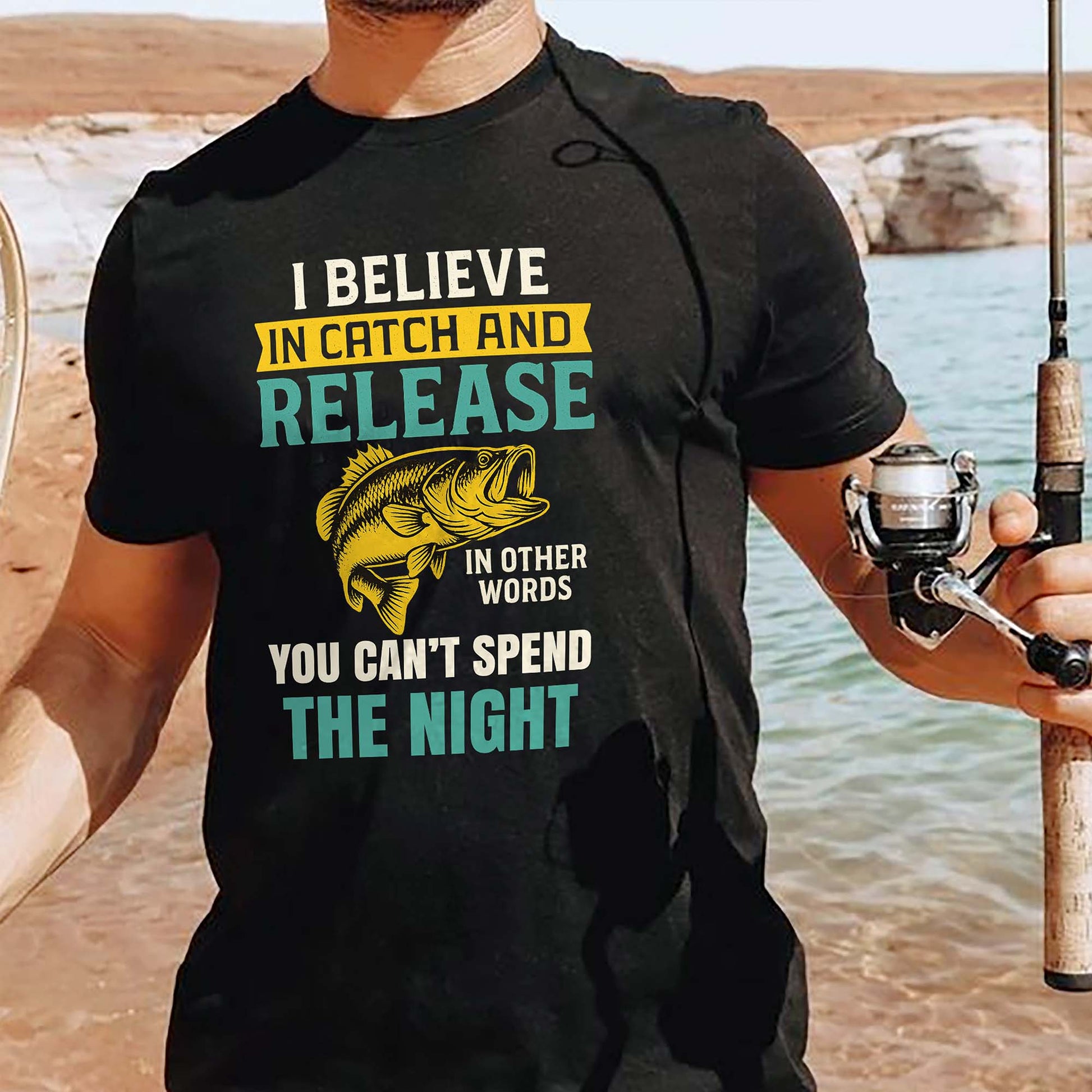 I Believe In Catch And Release Shirt – Funny Fishing Tee – Fisherman Humor Gift – Black – Up To 5XL