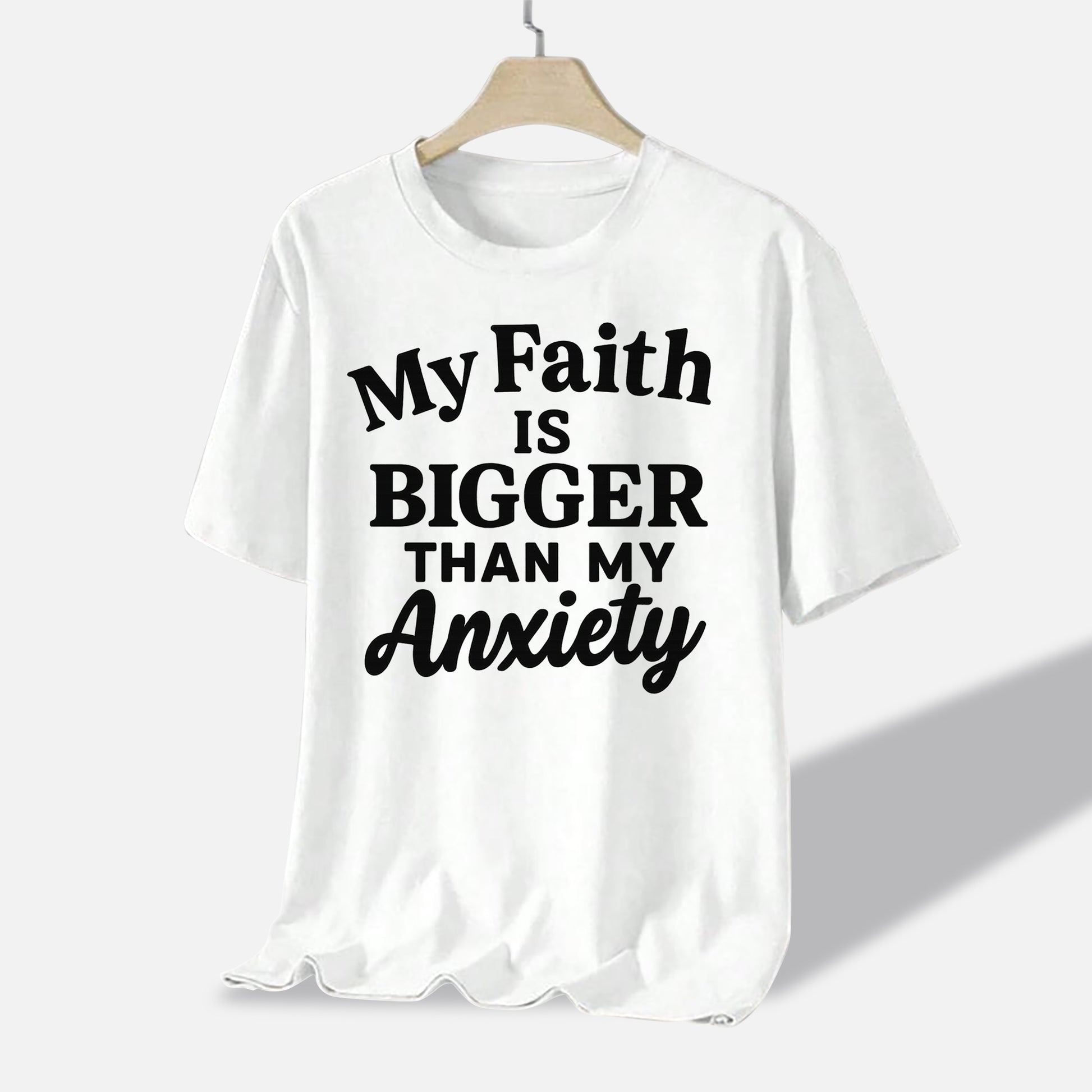 My Faith is Bigger than my Anxiety T-Shirt- Funny Jesus Shirt For Christians- White - Up To 5XL