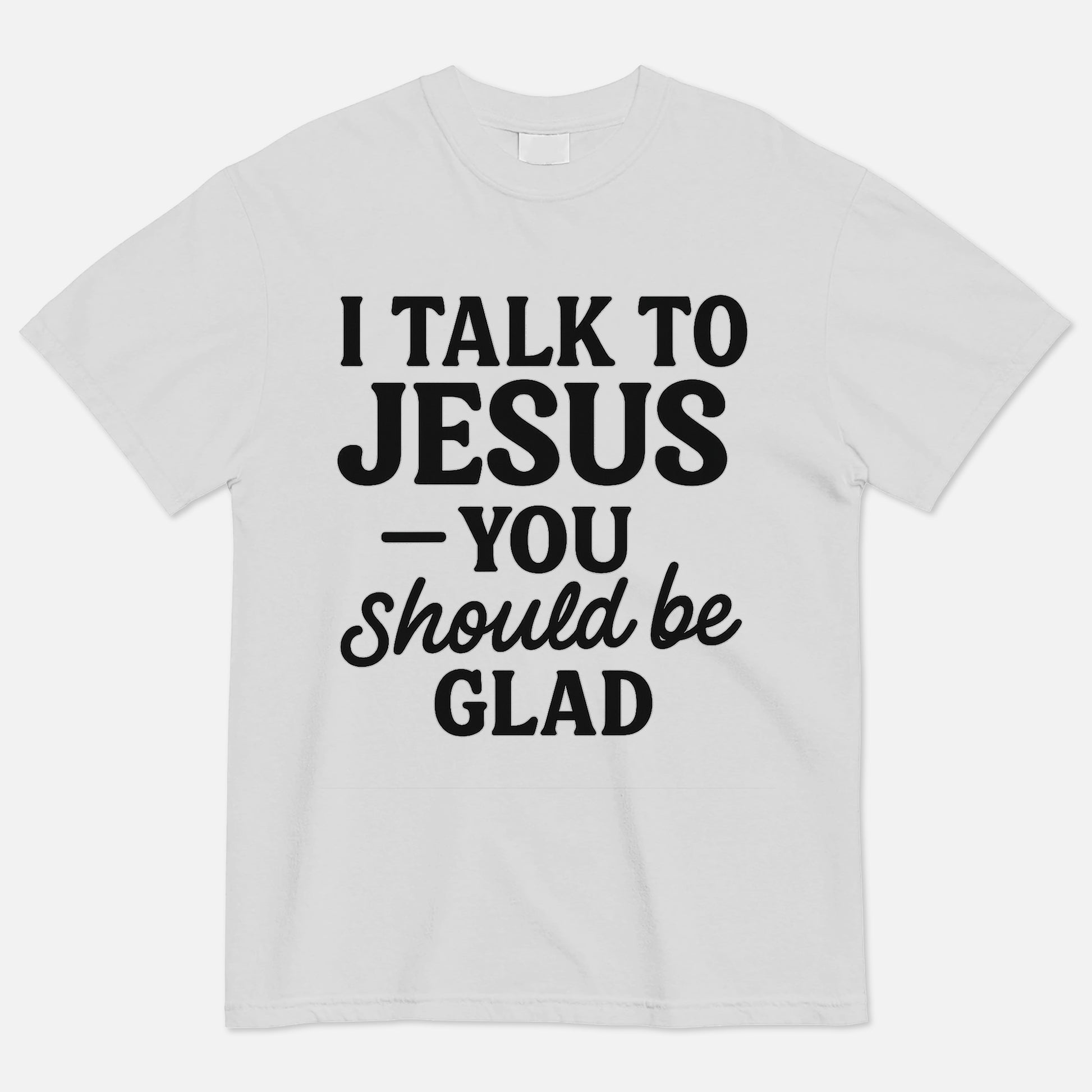 I Talk to Jesus You Should Be Glad T-Shirt - Funny Jesus Shirt For Christians- White - Up To 5XL