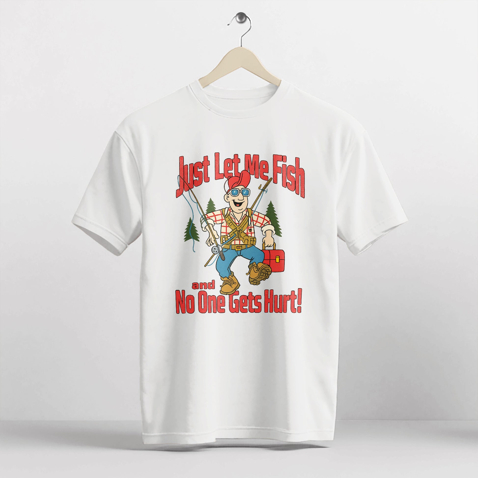 Just Let Me Fish and No One Gets Hurt Fishing Shirt – Funny Angler Tee – Fisherman Humor Gift – White – Up To 5XL