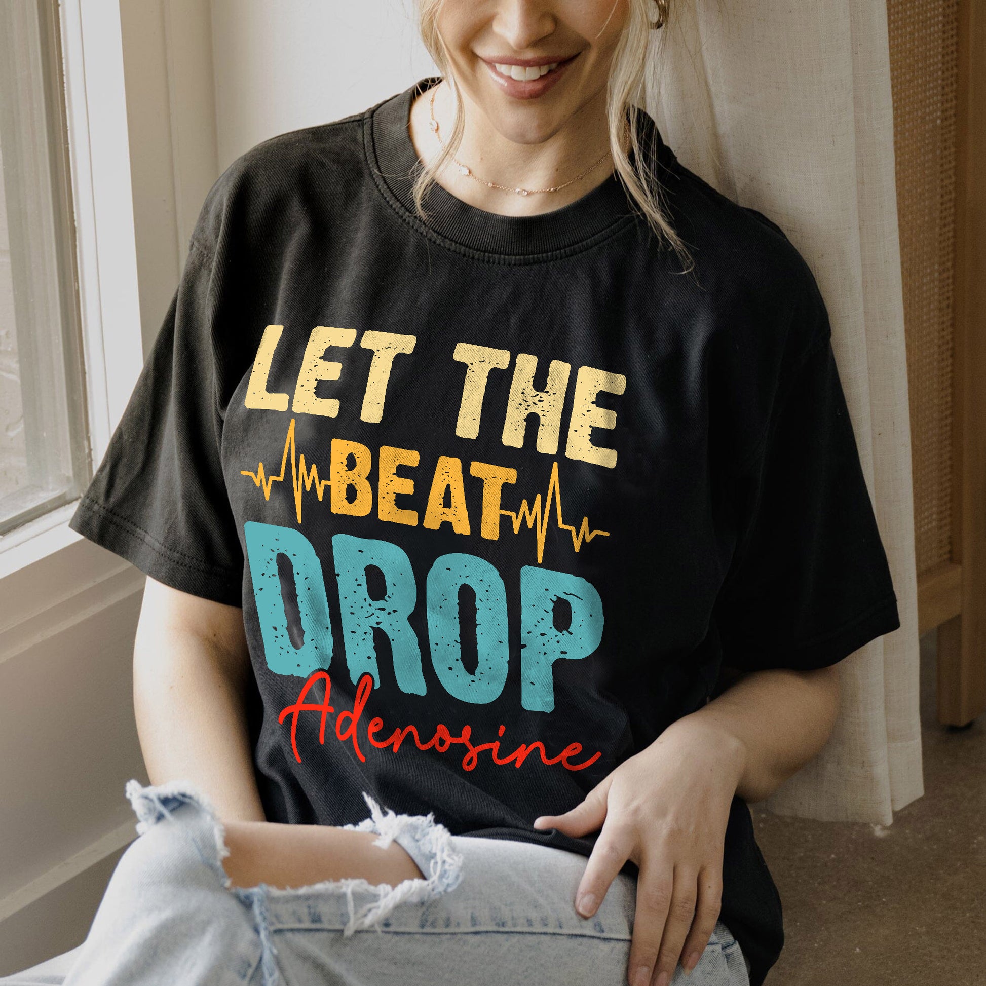 Let The Beat Drop Adenosine T-Shirt - Funny Tees For ICU, ER Nurse - Black - Up To 5XL