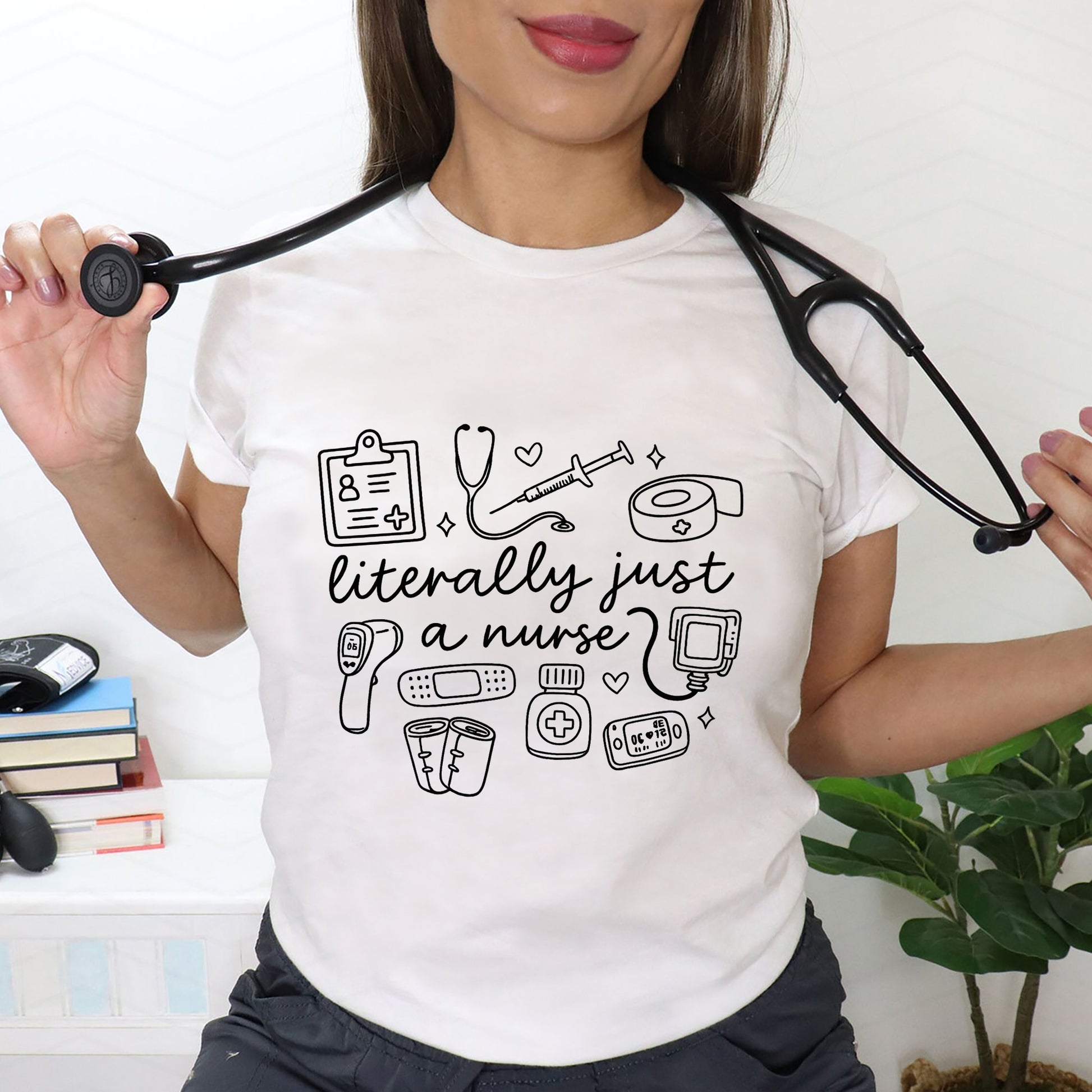 Literally Just a Nurse T-Shirt - Gift Tees For Nurse - White- Up To 5XL