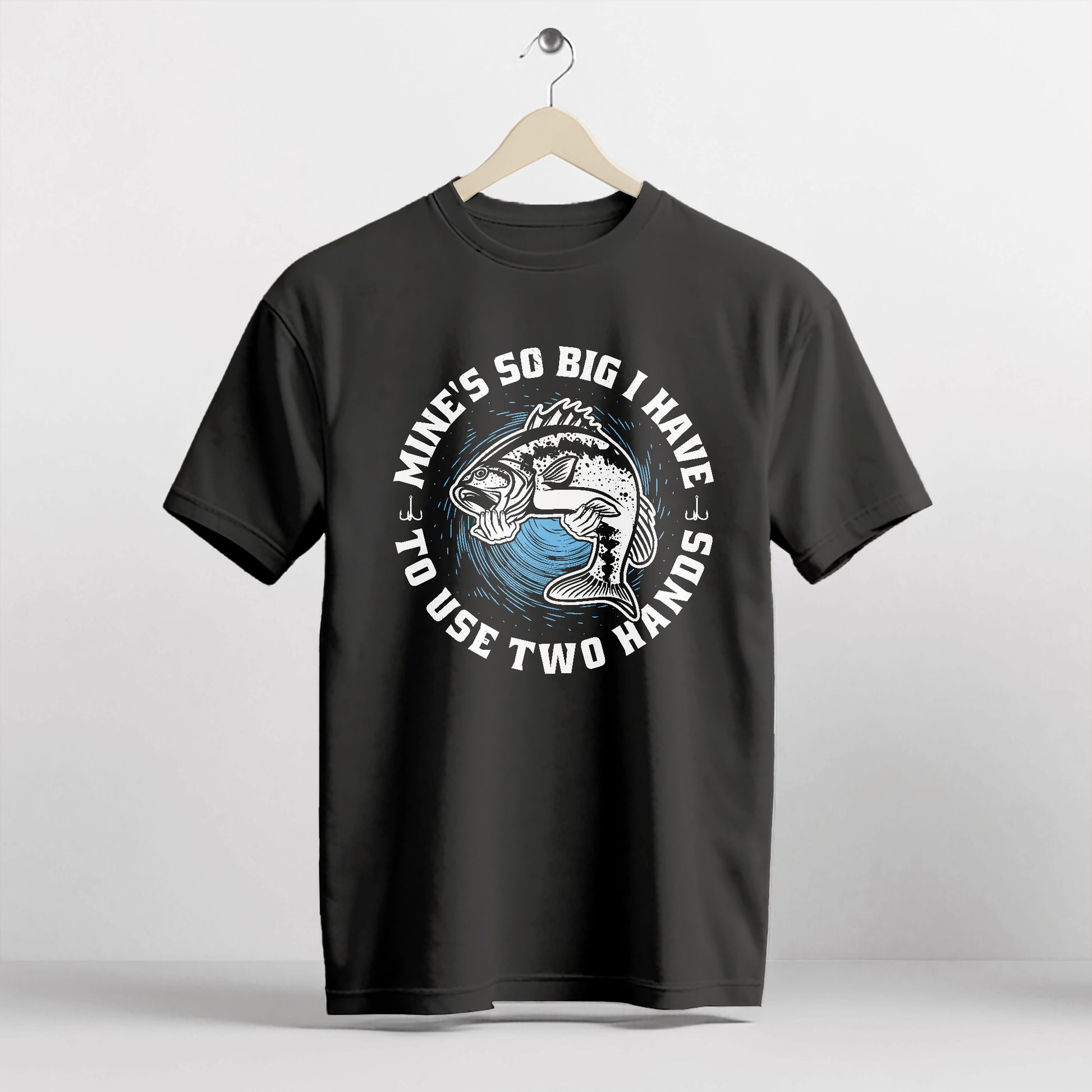Mines So Big I Have To Use Two Hands Shirt – Funny Fishing Tee – Humorous Angler Gift – Black – Up To 5XL