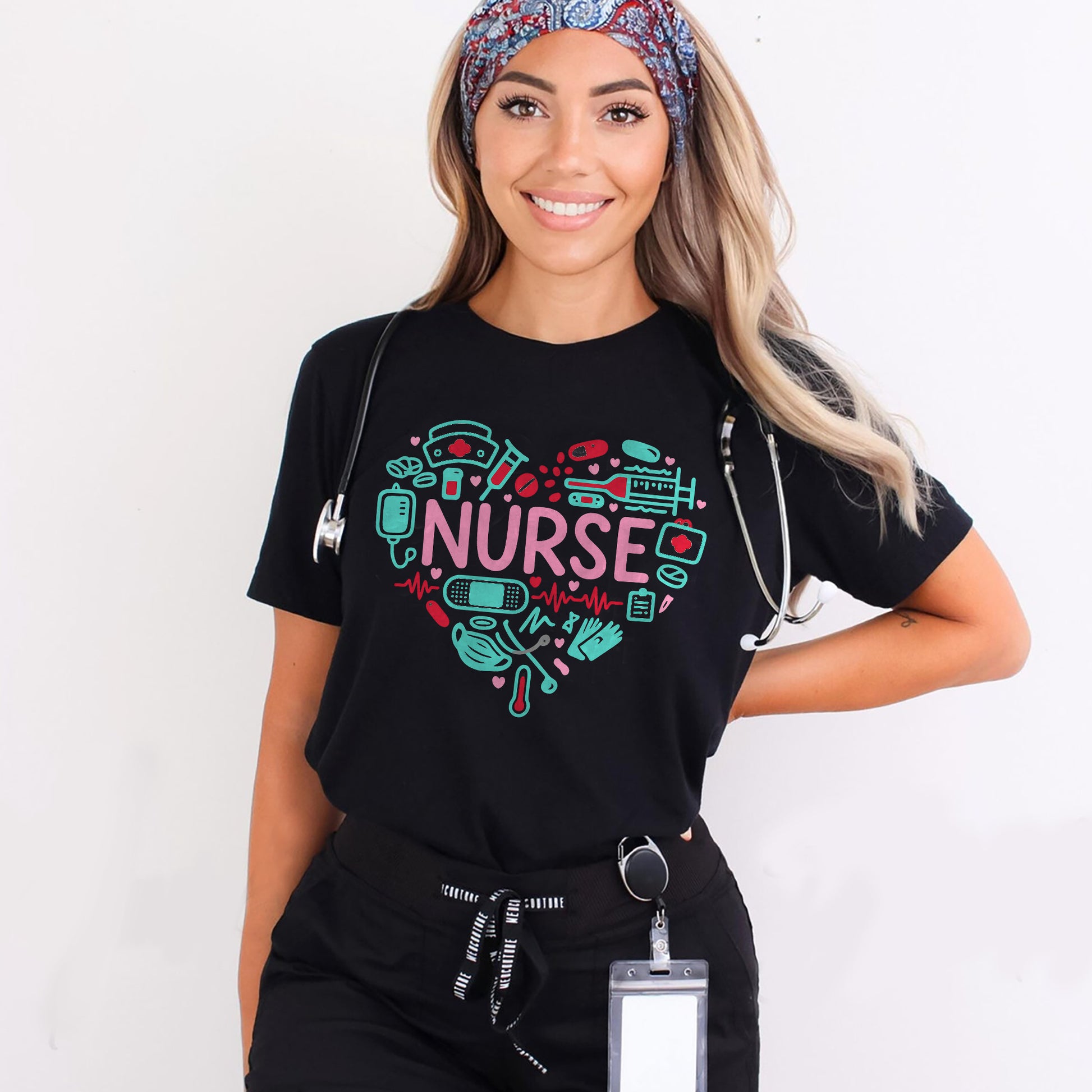Nurse Heart T-Shirt - Funny Tees For CNA Nurse-Black - Up To 5XL