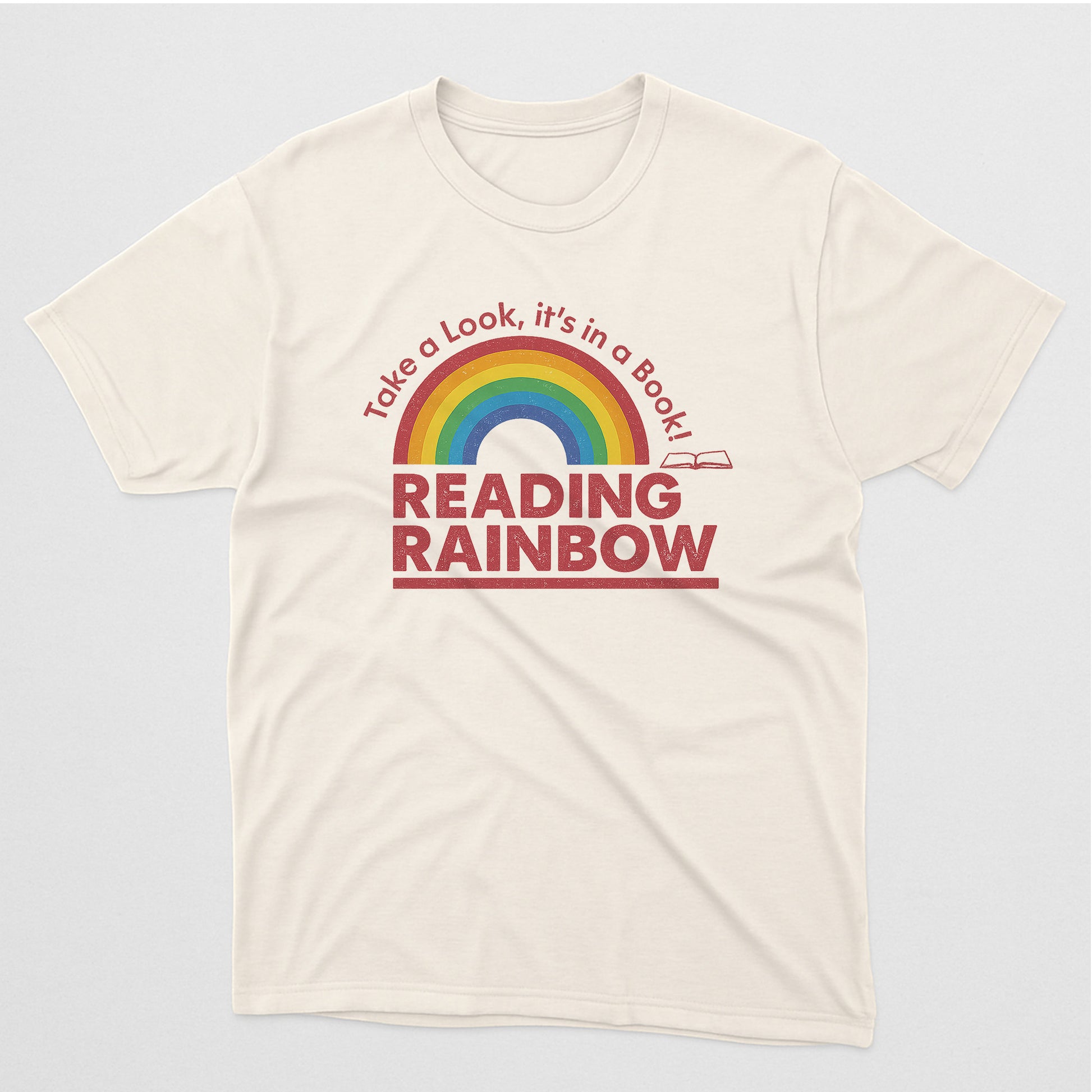 Reading Rainbow T-Shirt – Vintage Book Lover Tee – Natural - Up To 5XL