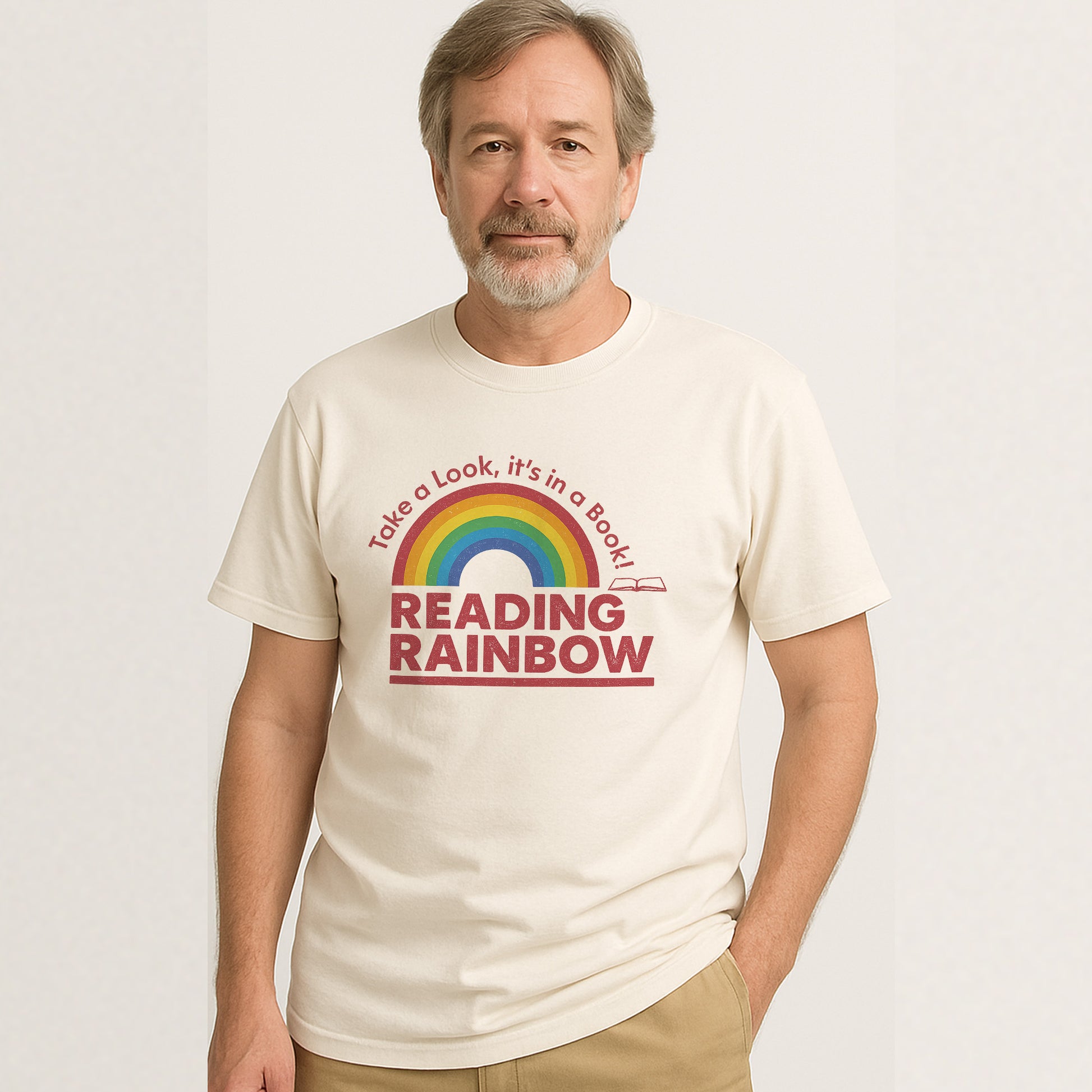 Celebrate the joy of reading with this nostalgic “Reading Rainbow” T-shirt! Featuring the iconic phrase “Take a Look, It’s in a Book,” this retro-style tee is perfect for educators, bookworms, or anyone who grew up inspired by literacy and rainbows. Soft and comfortable, it’s a feel-good shirt for classrooms, libraries, or cozy reading days at home.