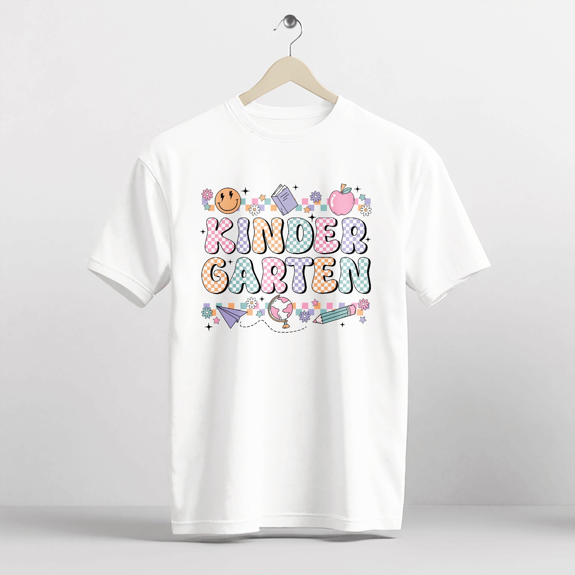 Retro Kindergarten Shirt – Checkered Back To School Tee – White – Up To 5XL