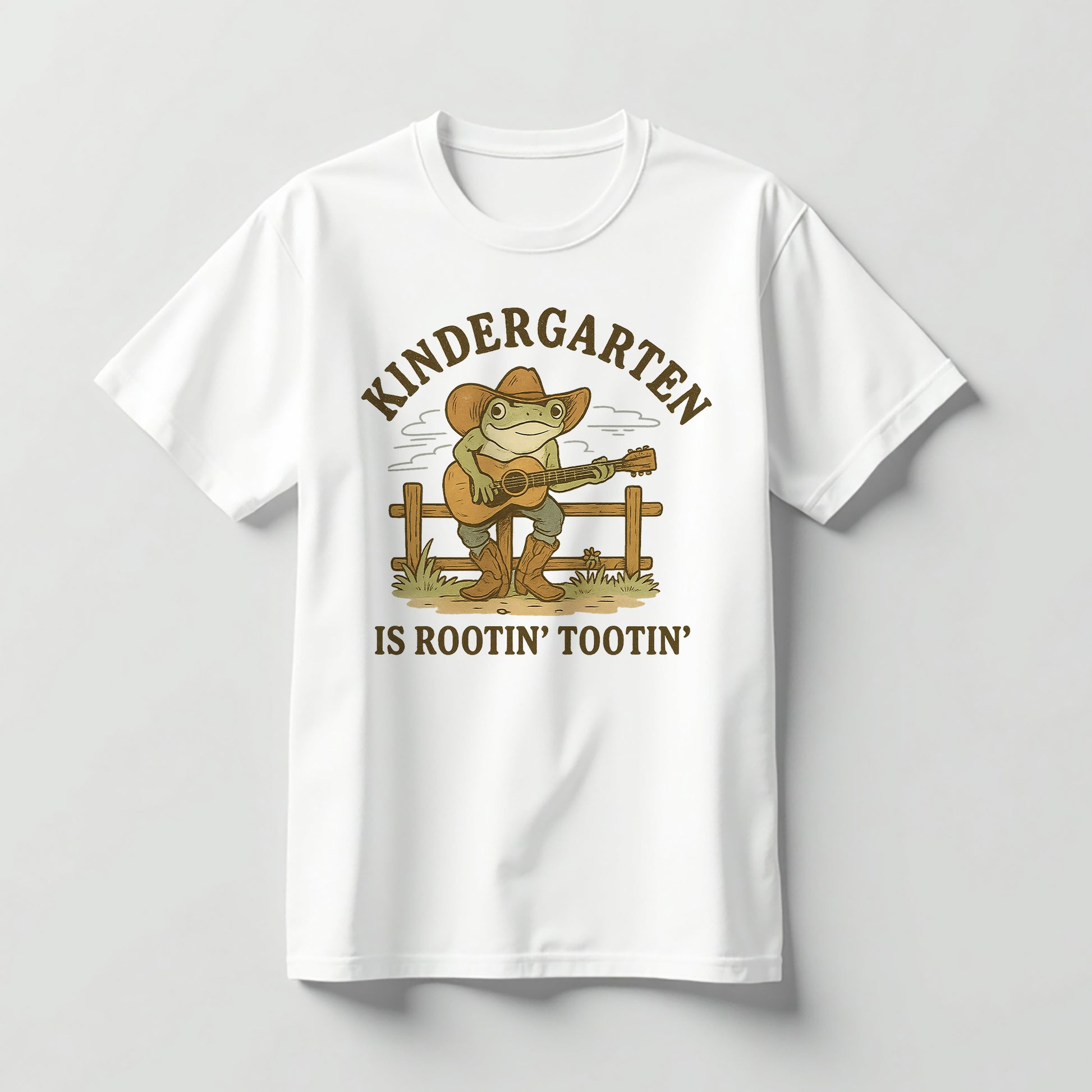 Rootin' Tootin' Kindergarten Shirt – Funny Frog Meme Teacher Tee – White – Up To 5XL
