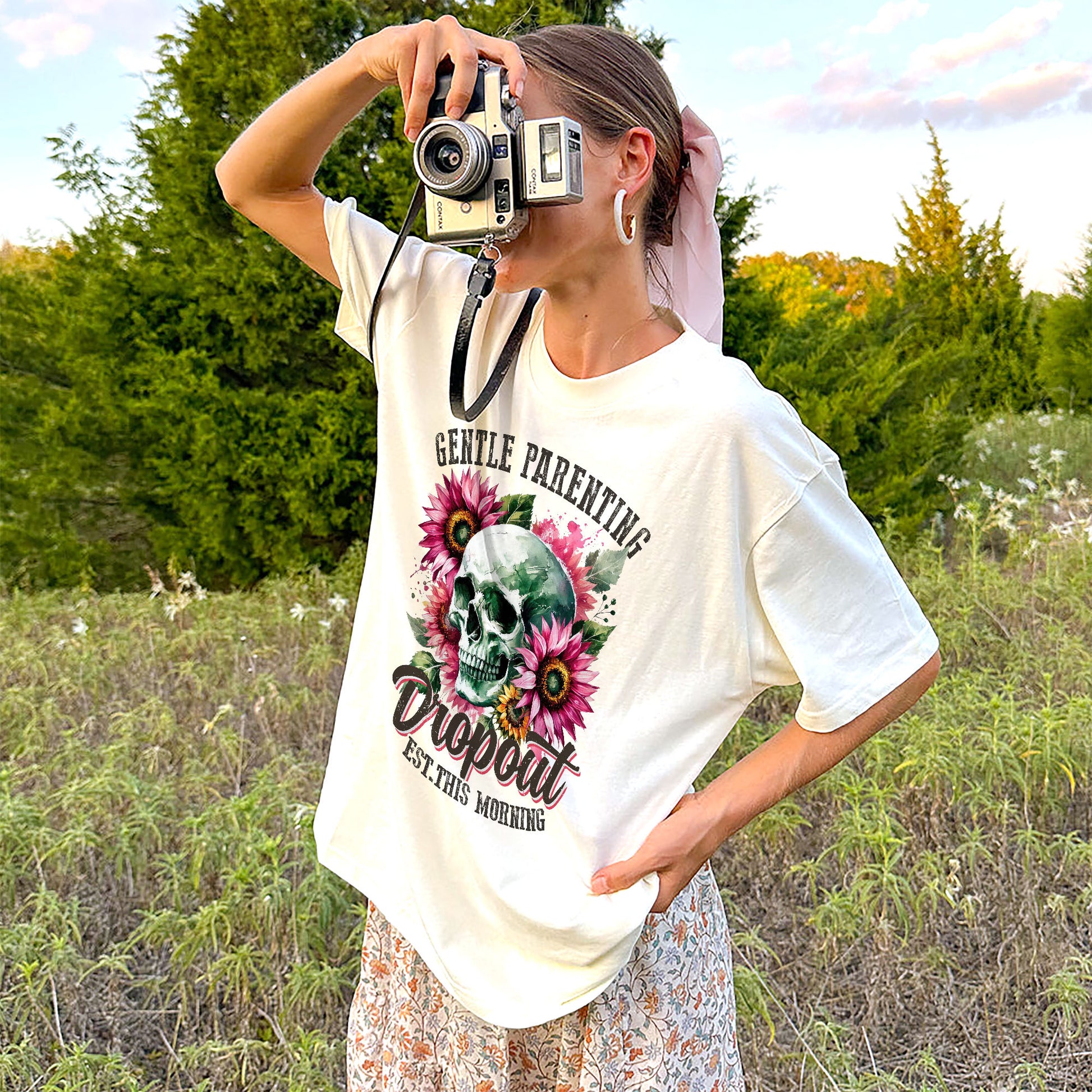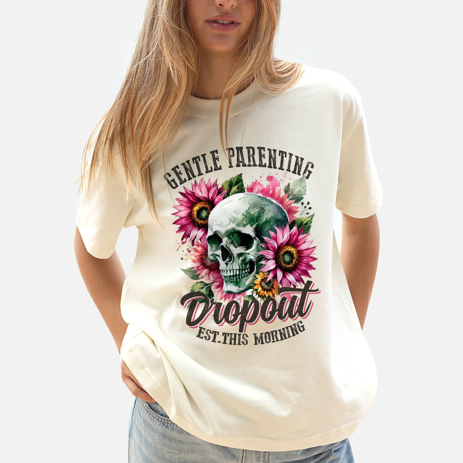 Sarcastic Mom Shirt – Gentle Parenting Dropout Tee – Dark Humor Motherhood T-Shirt- Natural - Up To 5XL
