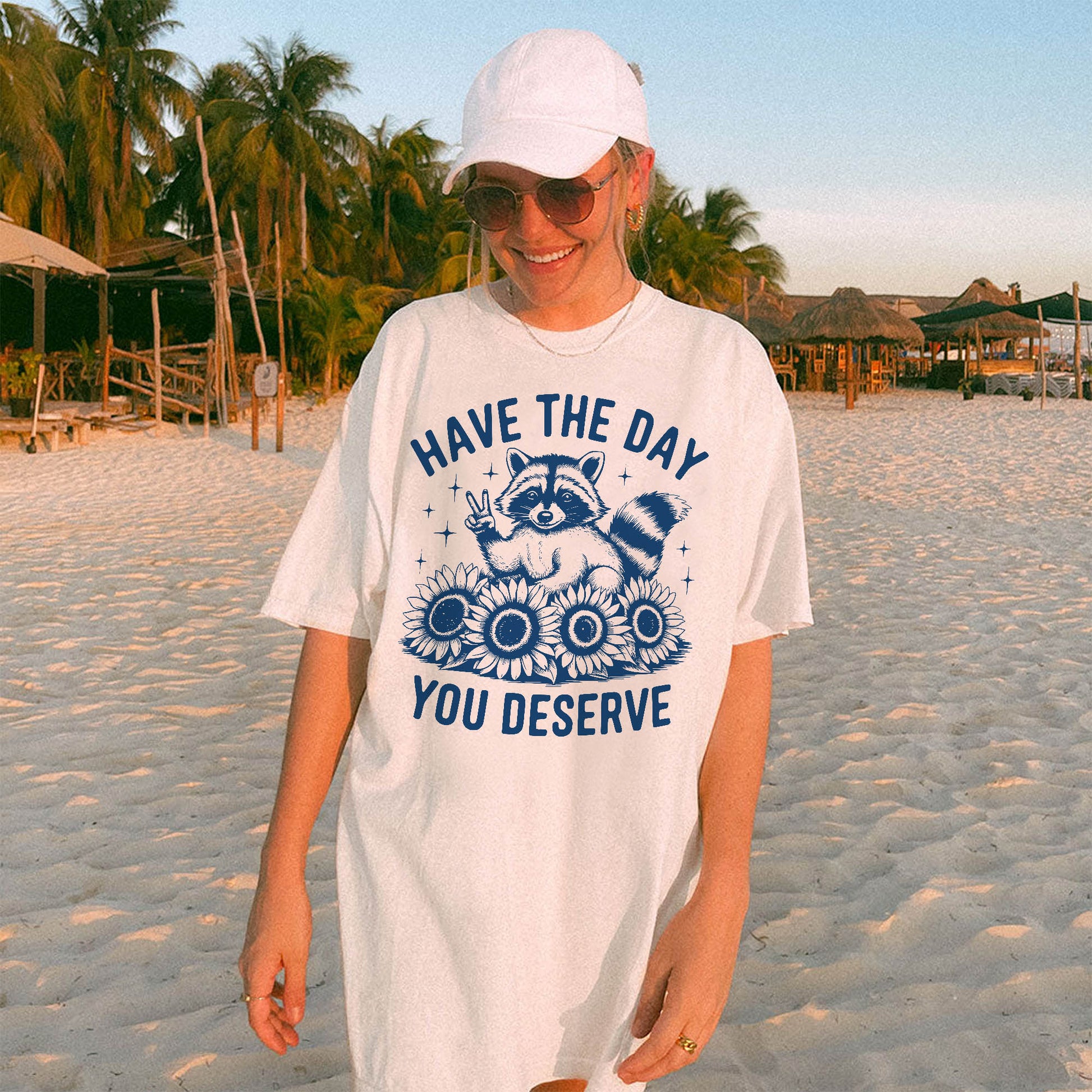 Sarcastic Raccoon Shirt – Have the Day You Deserve Funny Tee For Women - White - Up To 5XL