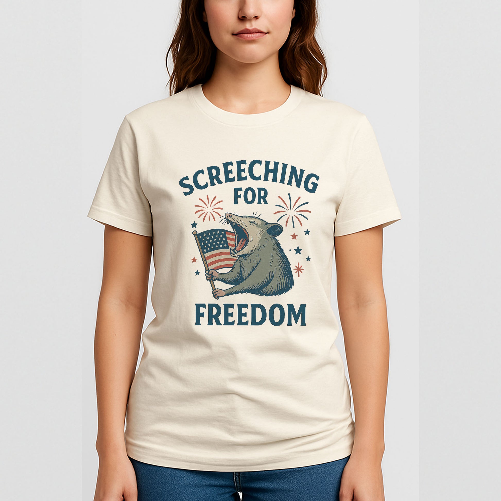 Screeching for Freedom Shirt – Funny Possum 4th of July Meme Shirt – Natural Tee - Up To 5X