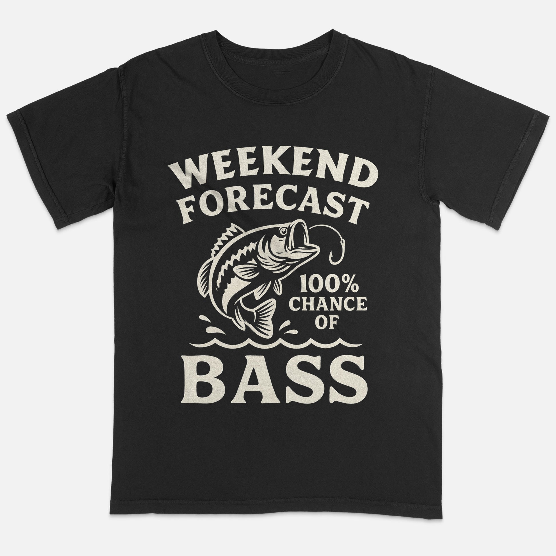 Weekend Forecast 100% Chance Of Bass Fisherman Shirt - Funny Fishing Tee For Anglers - Black - Up To 5XL