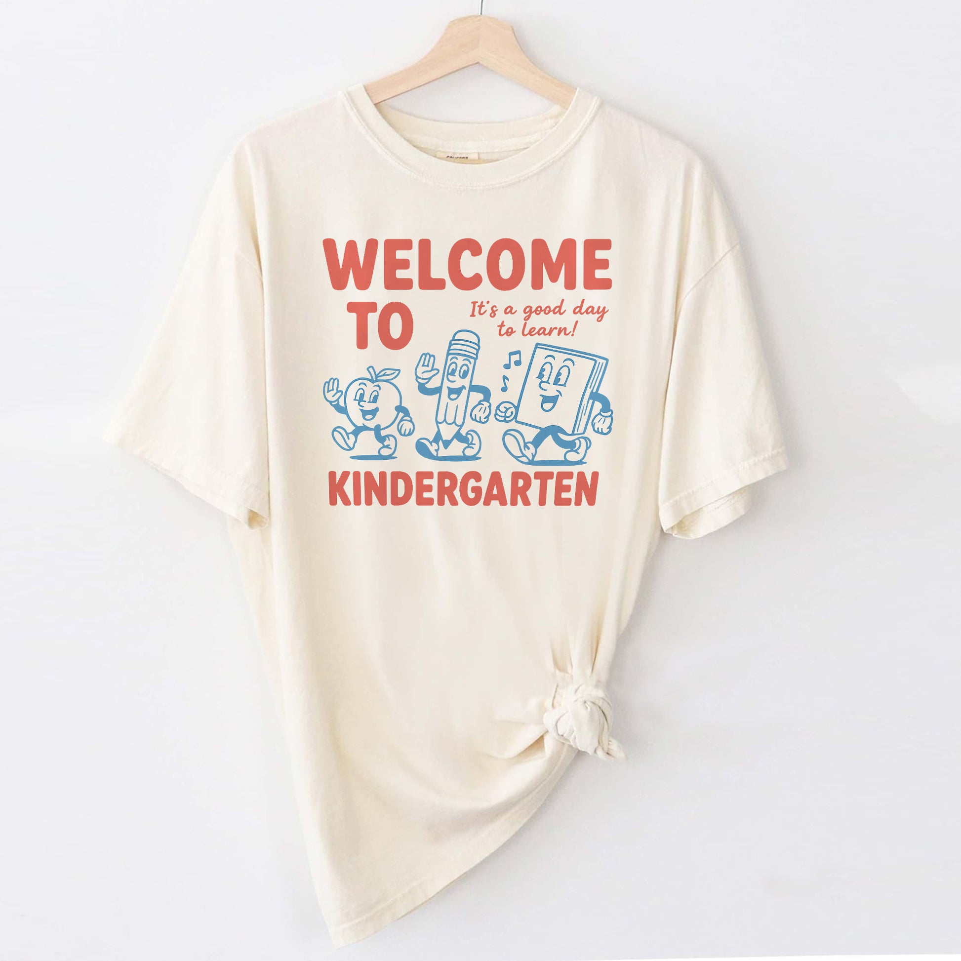 Welcome to Kindergarten Shirt – It’s a Good Day to Learn Tee – Back to School Teacher Tee – Natural – Up To 5XL
